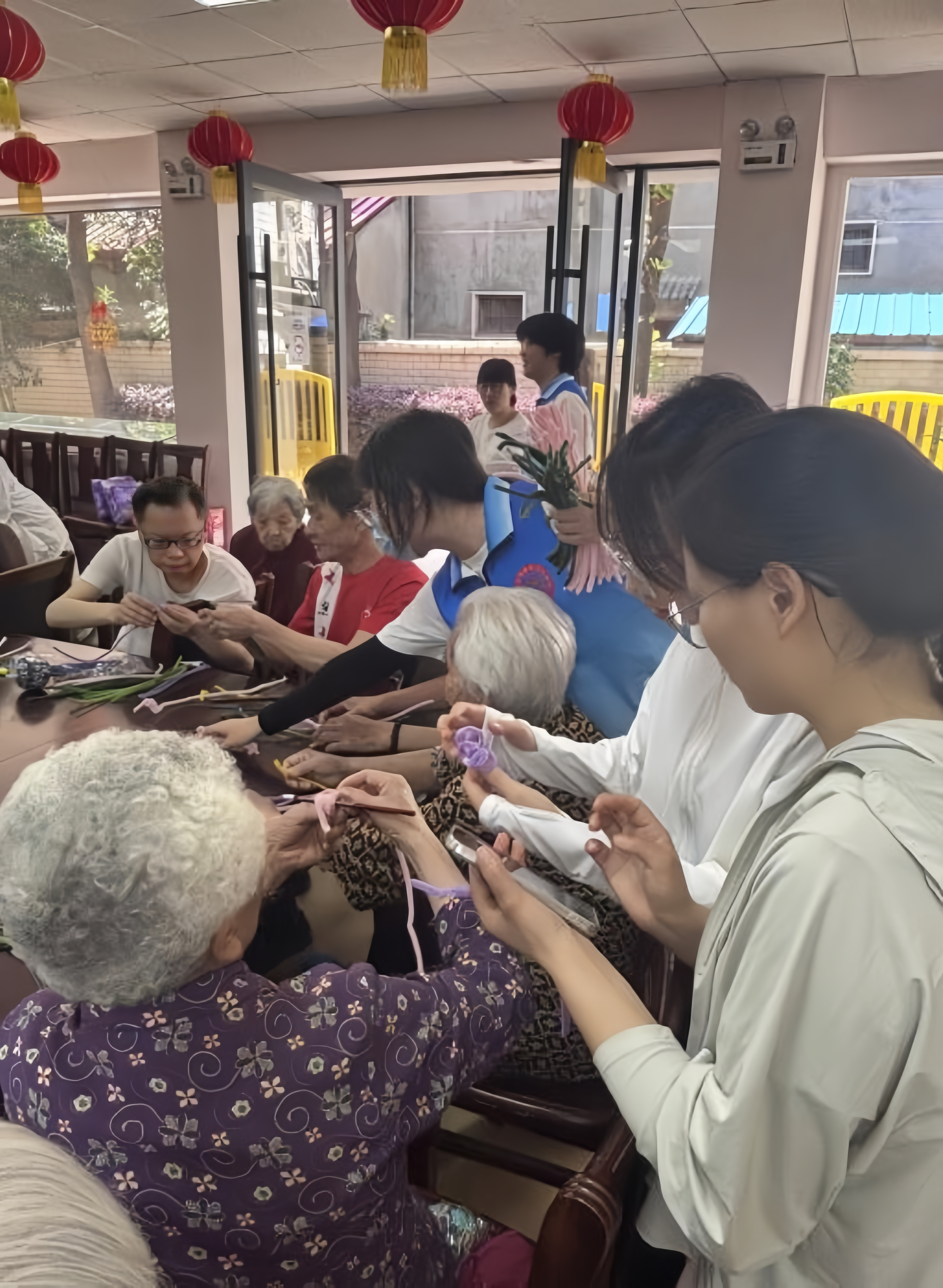 手工疗愈专区成为创意工坊,师生运用折纸、串珠、扭扭棒非药物干预手段,不仅引导了老人们在精细动作训练中提升手眼协调能力,更让他们感受到了来自社会的关爱与陪伴。