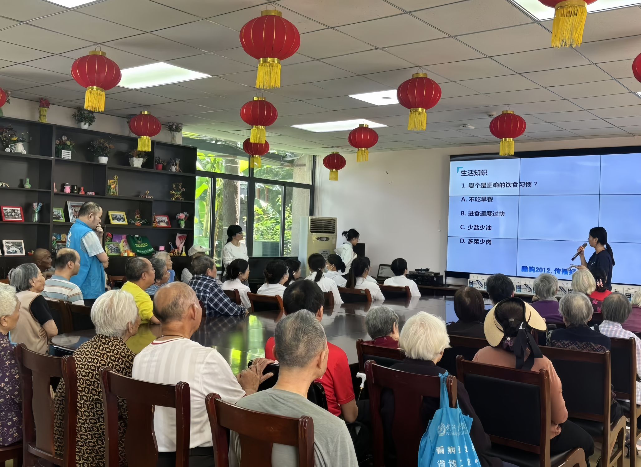 随后,老年健康知识问答环节引发现场热情互动。老人们踊跃抢答,气氛轻松活跃。在党员志愿者们耐心细致的讲解下,参与活动的老人们收获了满满的健康知识,切实提升了自身的健康意识和自我保健能力。