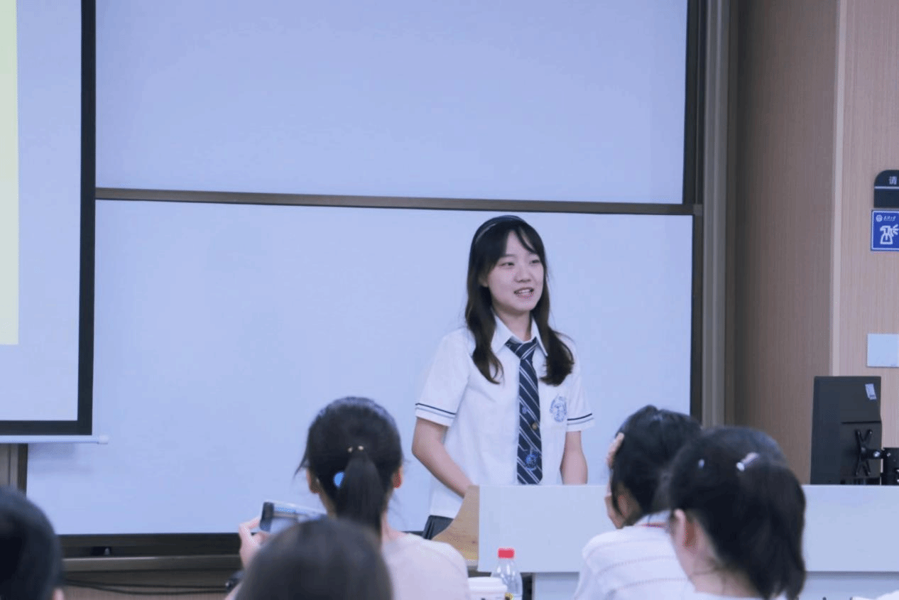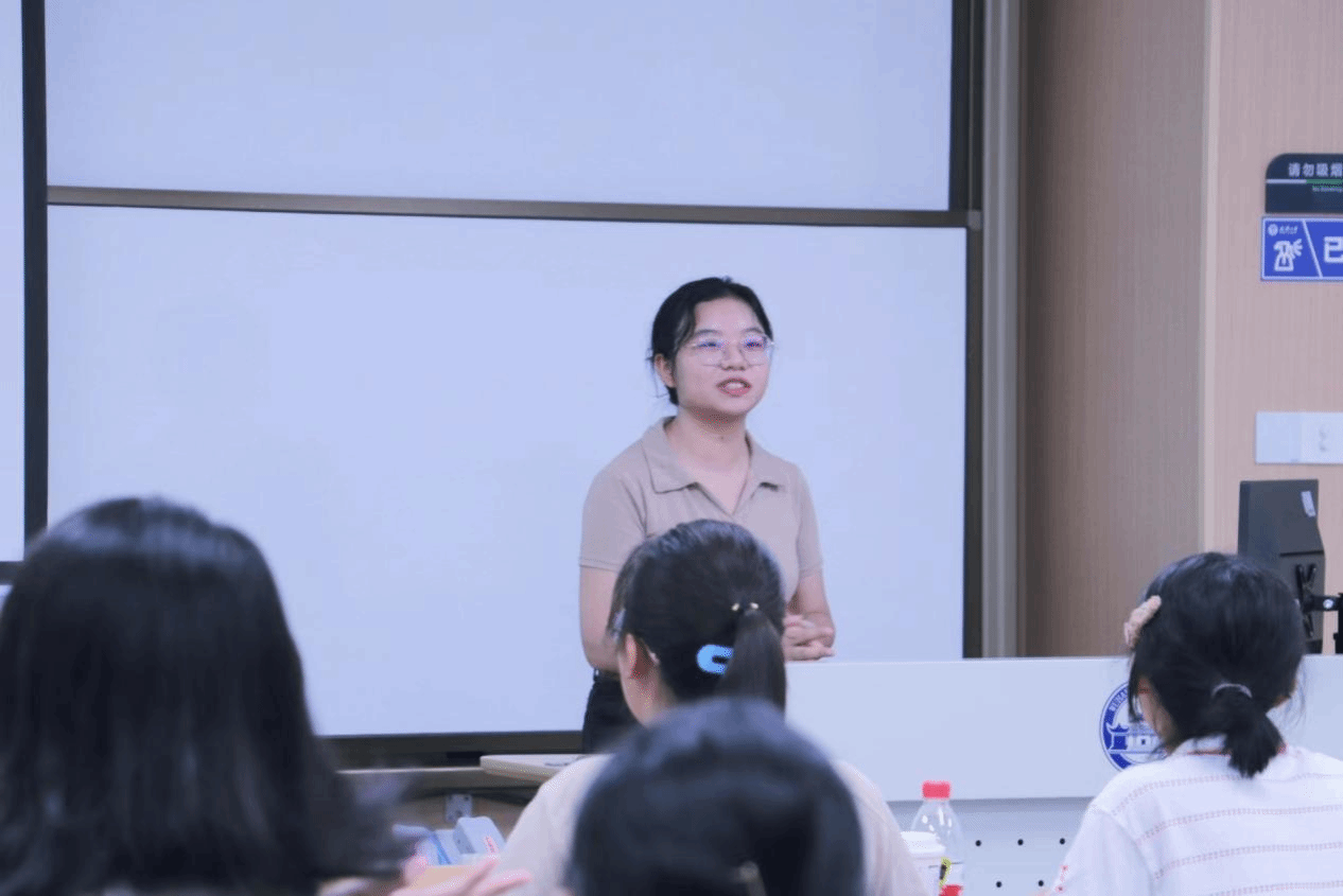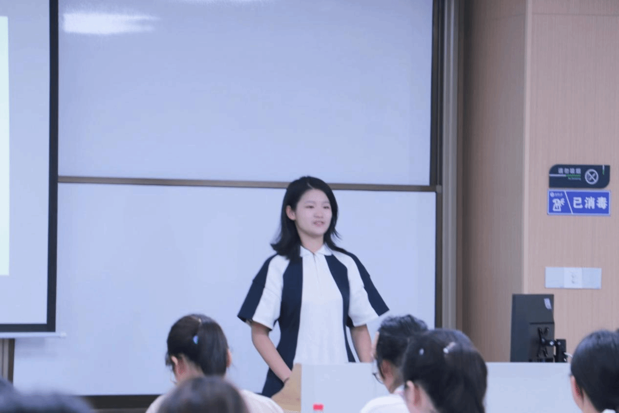2022级本科班的景小桐进行经验交流。她从自身经历出发强调了前期规划与日积月累,毫无保留地分享了自己在日常学习中的学习方法与技巧,帮助新生摆正心态,减少信息差,鼓励新生了解学院评价体系以及学分考核标准,让新生明白边学边清理复习的重要性。