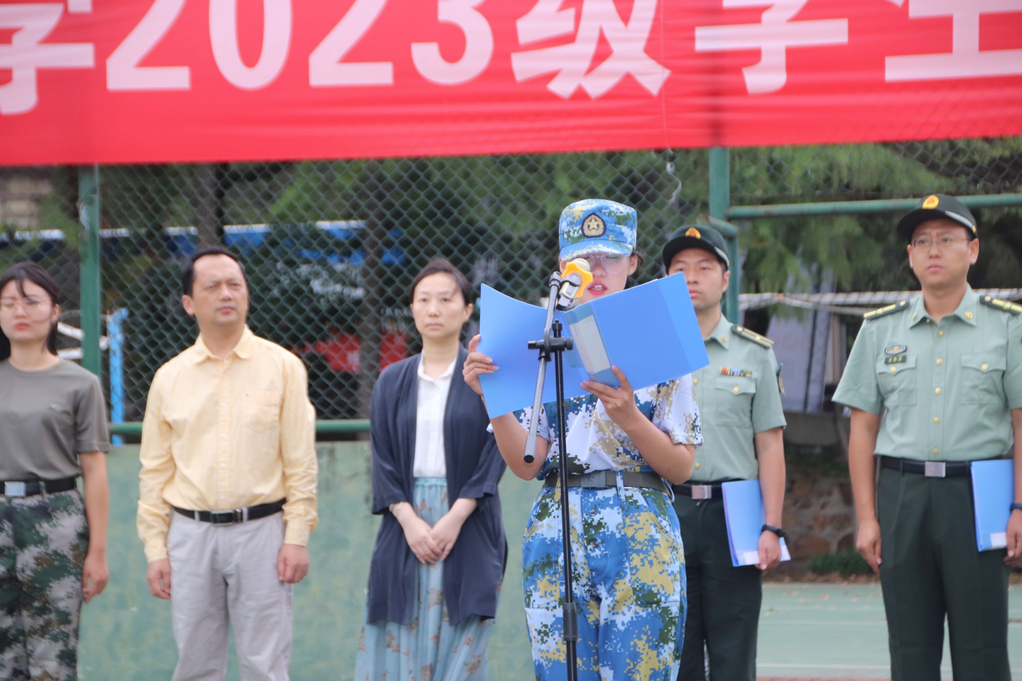 副院长杨冰香老师,公共与卫生学院党委副书记高功敏老师,五团一连指导员陈声亮老师,五团二连指导员栾静怡老师、马也平老师、毛诗柔老师,全体承训教官、保障人员及2023级全体参训学生出席动员会。大会由五团一连指导员赵成毅老师主持。