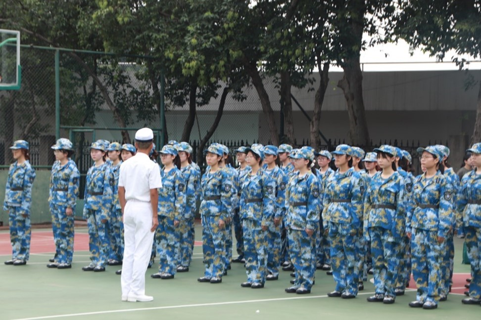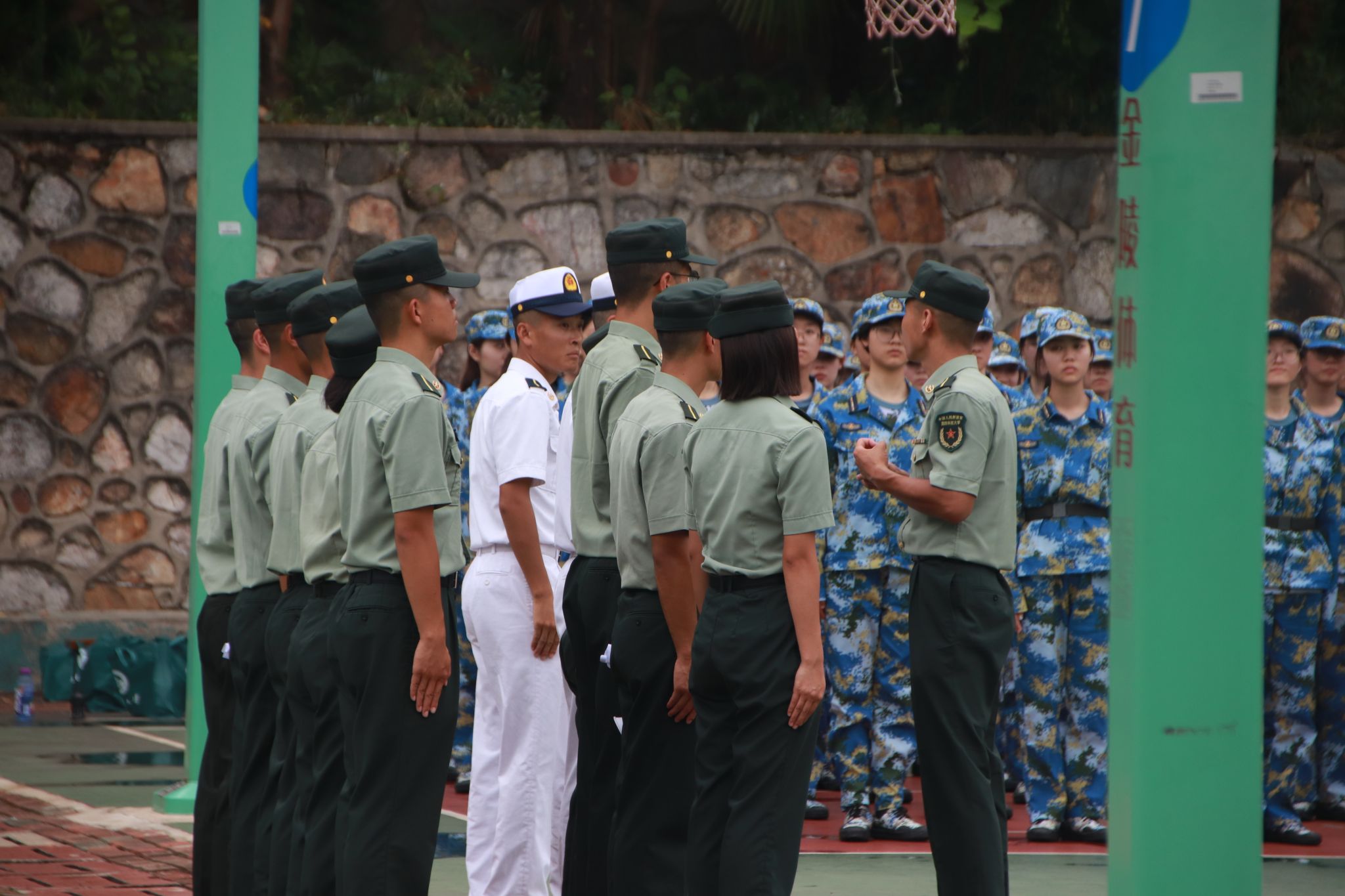 随着一声“齐步走”,各位教官来到现场,他们昂首阔步、整齐划一,新生们的掌声经久不息,一股赞叹之情在大家心里油然而生。