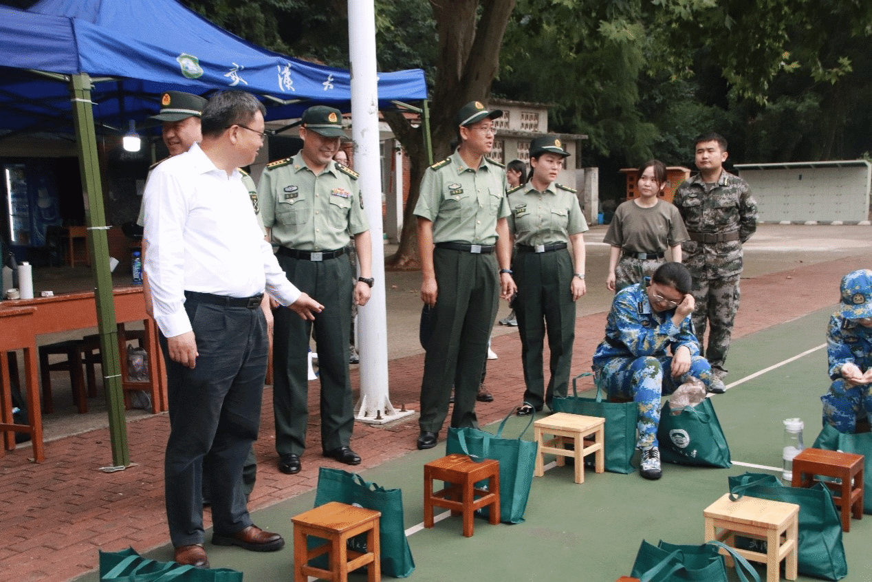 在紧张的训练过程中,张平文校长来到军训现场,观看大家训练情况,并慰问了身体不适暂未参训的学生情况,饱含对学生的殷殷关怀之情。