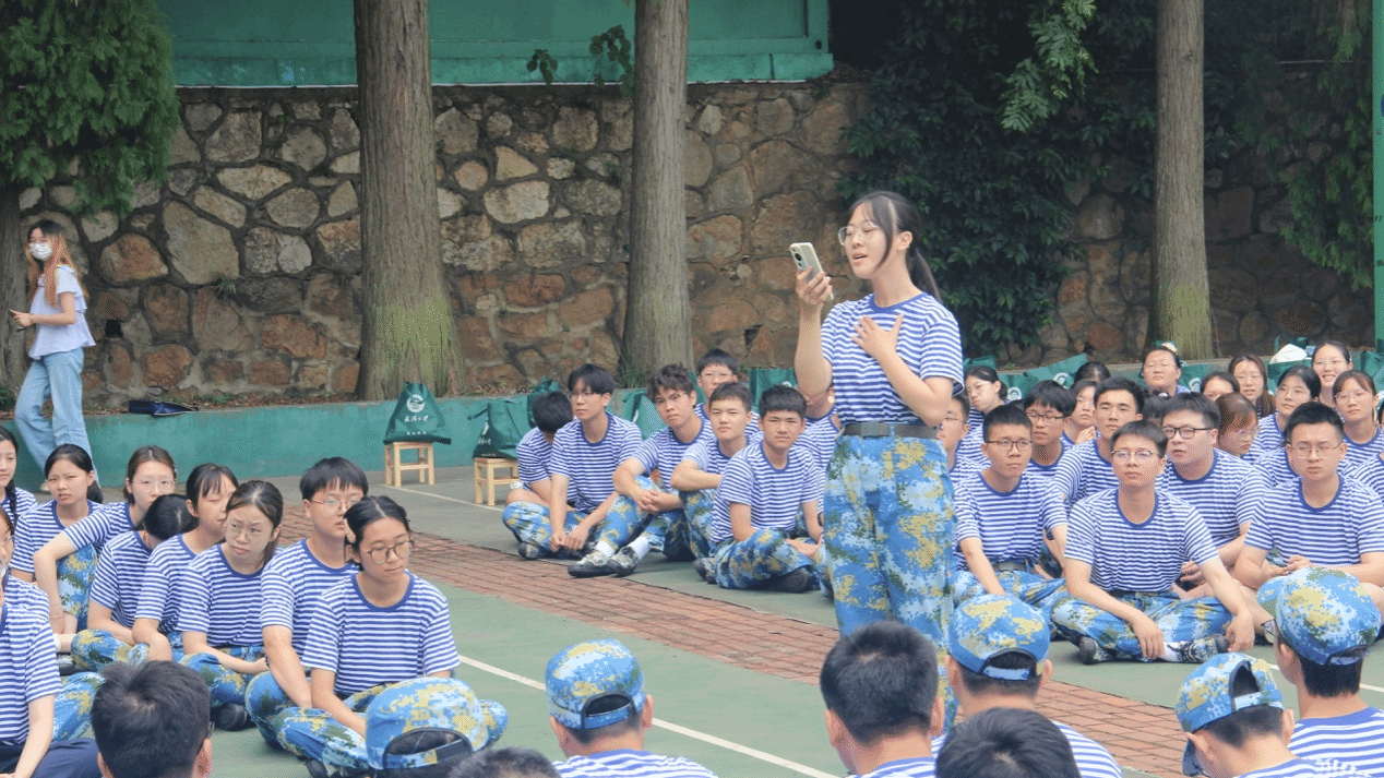 在两天的训练中,各位教官向新生们讲解了各项技术动作要领。立正、稍息、跨立、转体、敬礼等基础科目不断重复,旨在强化他们的军事技能和纪律观念。虽然训练过程中有不少困难和挑战,但新生们凭借着顽强的毅力和团结协作的精神,一次次克服困难,迎接挑战。在训练间隙,教官组织新生们拉歌,《团结就是力量》、《强军战歌》、《当那一天真的来临》,这些耳熟能详的军歌此起彼伏地回响在篮球场上,伴随着欢笑,时而高昂、时而深情,铿锵有力,激情澎湃。