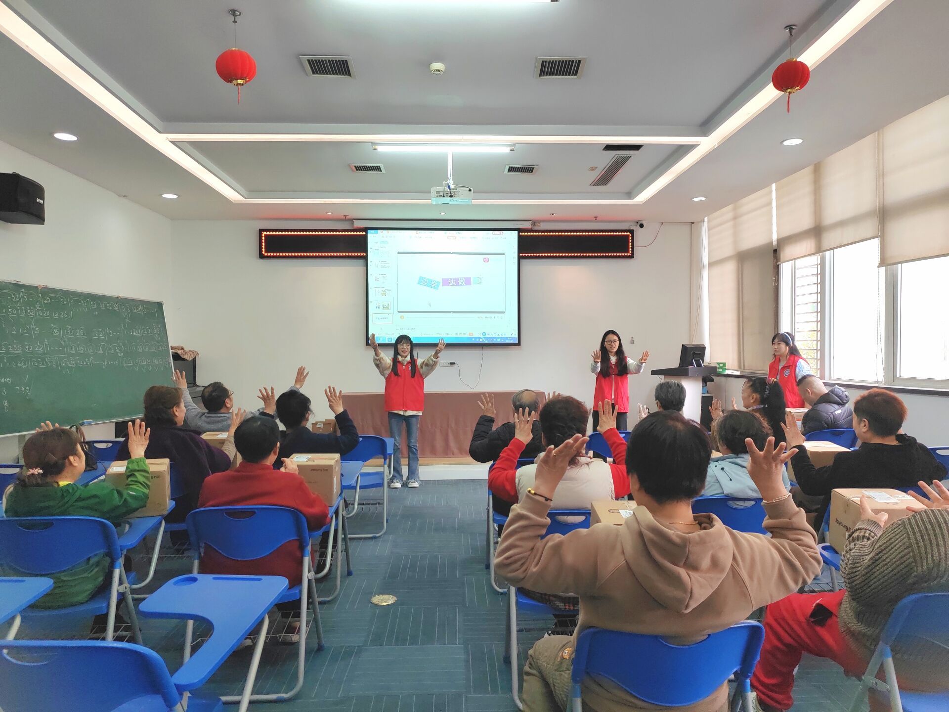 随后,刘盼盼、张桂琴两位同学向老年人讲解了认知症(老年痴呆)的基本知识,主要围绕其概念、临床表现和预防措施三个方面展开叙述,引导老年人重视认知症。活动现场,两位同学向老年人教学了手指操,鼓励现场的老年人一起参与大脑锻炼小游戏,现场气氛活跃,老年人们纷纷积极参与到我们的活动中来。