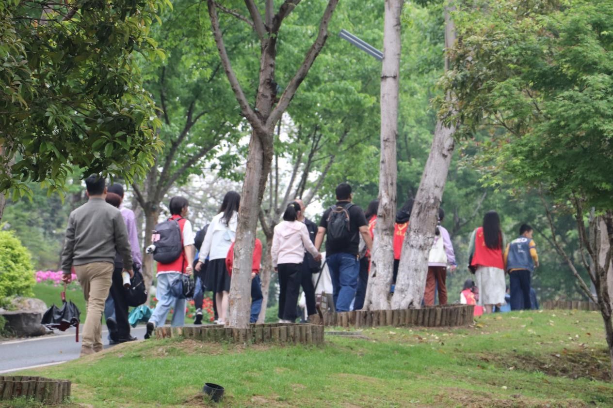 休息好后,小朋友、家长和志愿者一行向龟山进发,一路洒落笑声,一路拾取春光,构成一幅生机盎然的画面。小朋友们大口呼吸着新鲜的雨后山间空气,虽然略有疲惫,但是孩子们脸庞上始终挂着满足的笑容。下山之后,春游结束时,大家在山脚下留下了一张其乐融融的大合影,定格了这个难忘的春日记忆,也为“守护来自星星的孩子”志愿活动画上了圆满的句号。