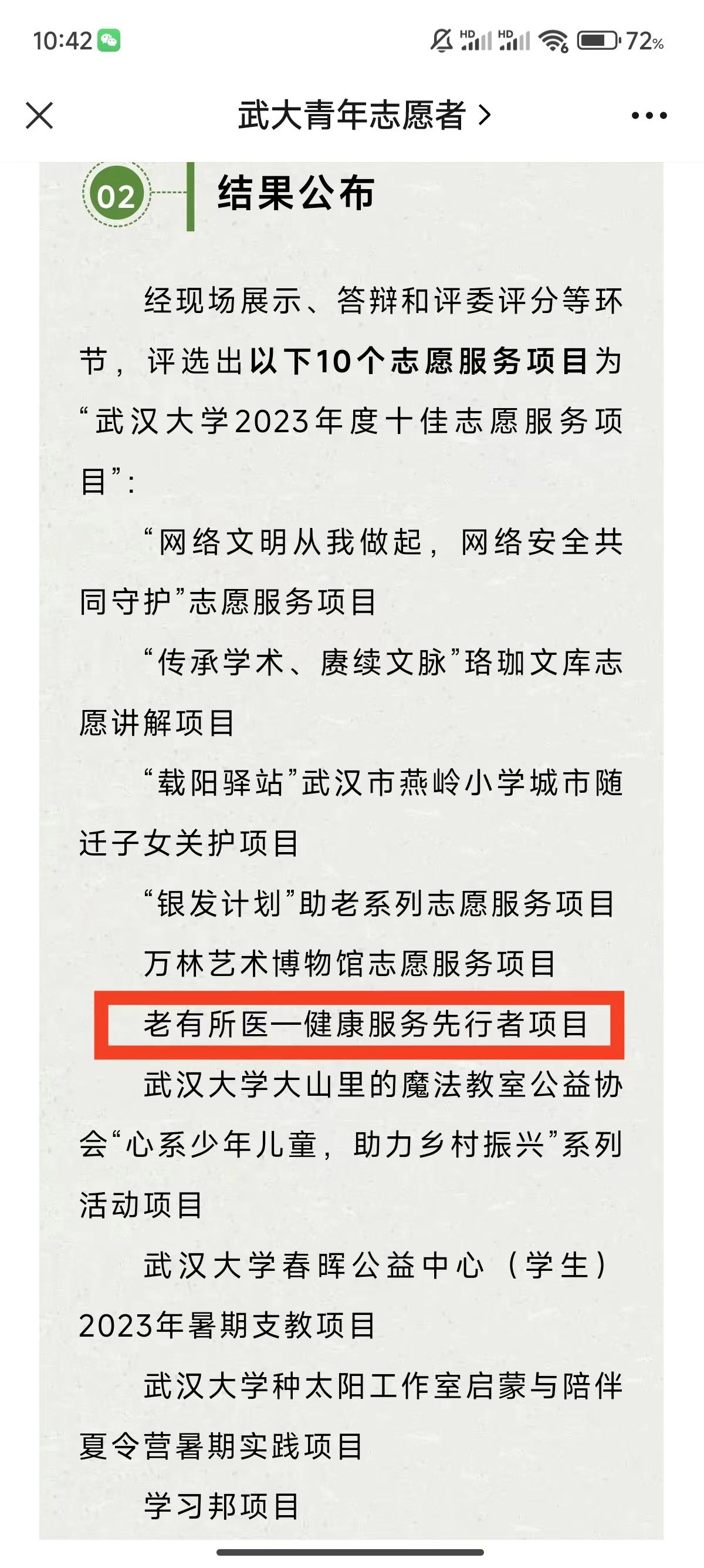 天使之翼社团在取得“2023年度湖北省本禹志愿服务队”称号后,又凭借“老有所医—健康服务先行者”项目荣获“黄瓜视频