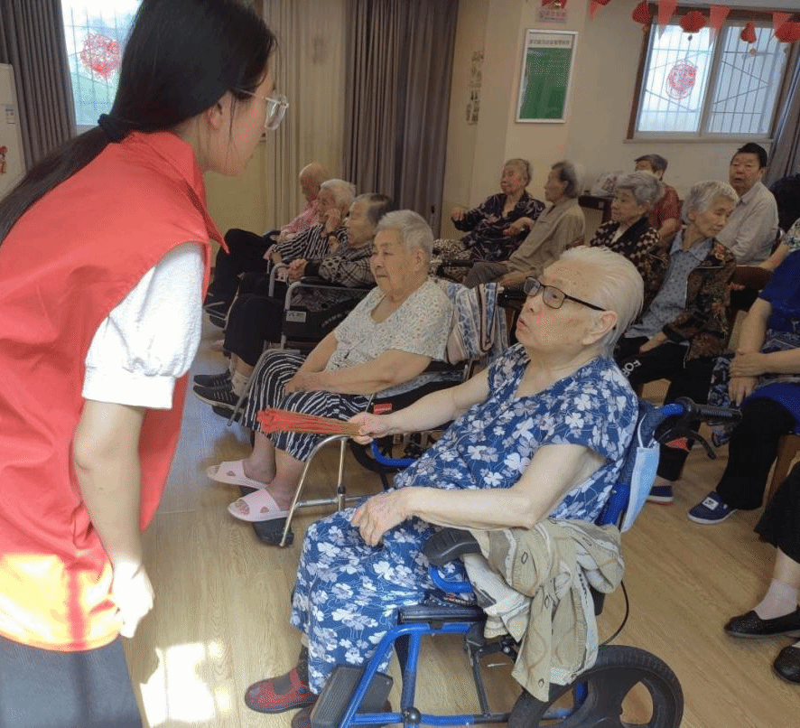 “助力医养结合,关爱老人健康”暑期社会实践队走入颐德养老院,面向老年人开展一系列健康教育活动,为老年人提供心理精神支持服务。