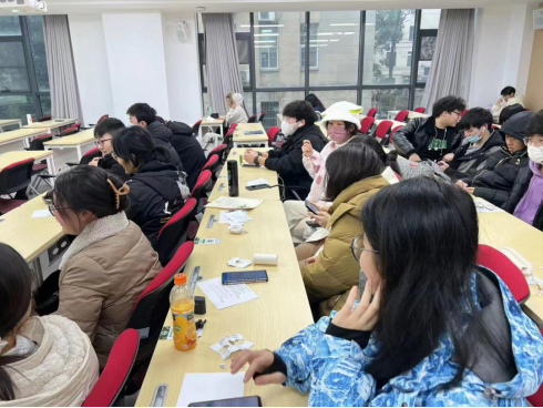 游戏规则是音乐响起时,在教室内传球,音乐停止时,拿到球那个人就要对传球人说句赞美的话。这个游戏大家都玩得很欢乐,因为受到赞美是一件让人开心的事,还可以促进同学们之间的友谊,也许之前并不知道别人有这么欣赏自己。张茜雅提到这个称为“富兰克林效应”,让同学们有了更深的体会且更好地掌握人际沟通的技巧。