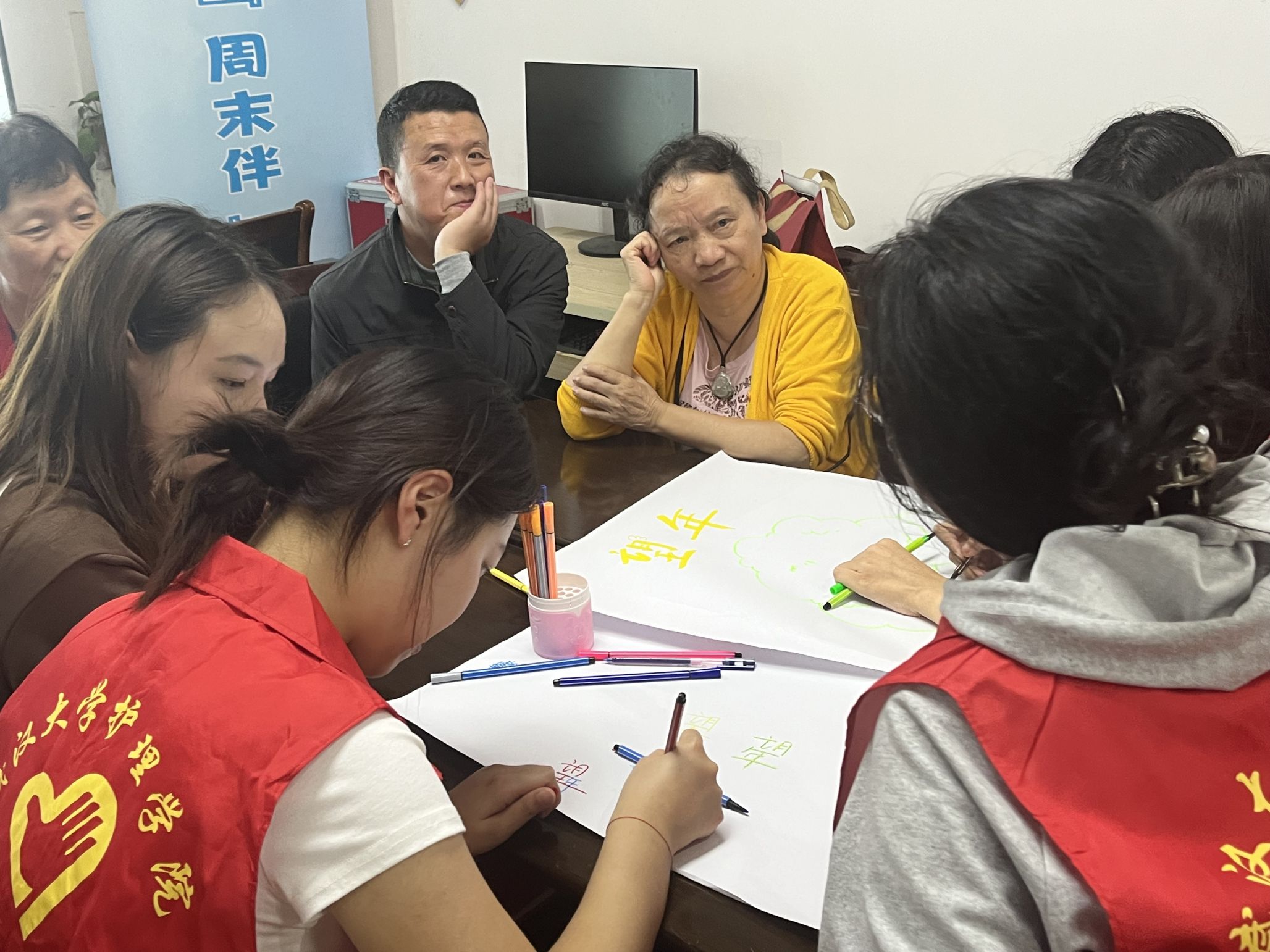 随后,15位志愿者同学与8位水生所老年互助小组老年人组成3个小组,为之后开展的“暖阳伴老行”系列生日会活动探讨制定相关策划方案,3个小组设计制定了相关的志愿者标志和设计方案。