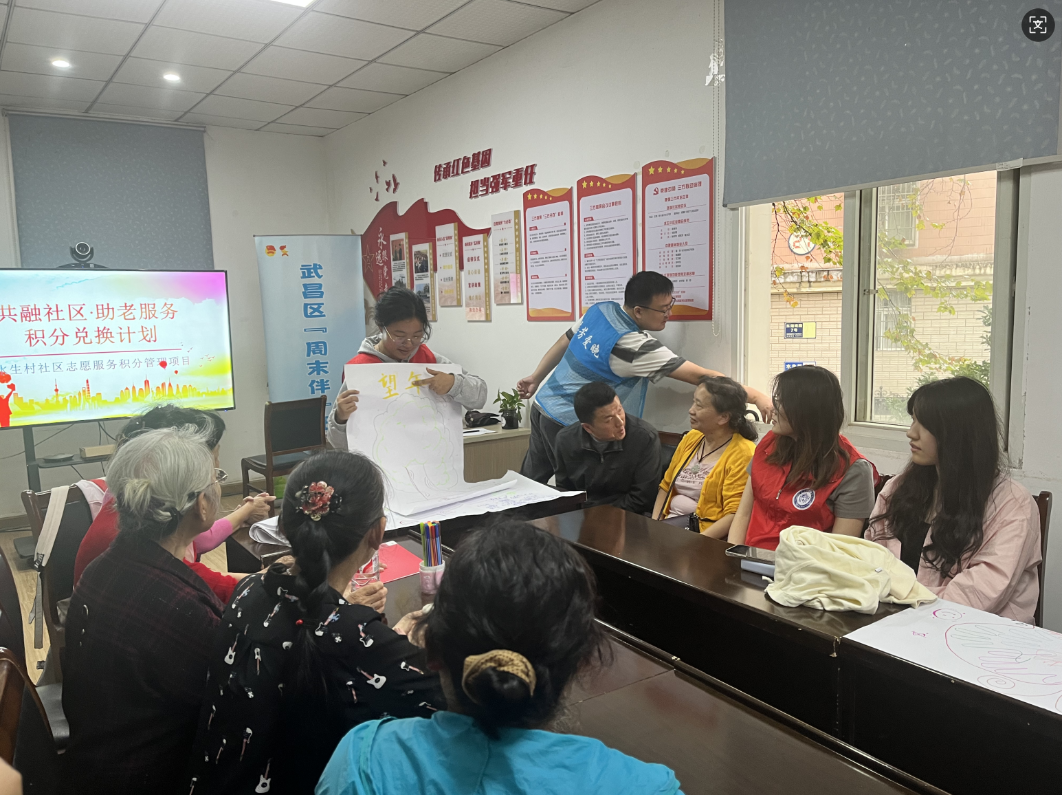 在王老师的讲解下,志愿者同学们对积分兑换制度及执行情况有了更加深入的理解,积分兑换项目通过衔接青年志愿者下沉党员、社区党委、社工组织、居民志愿者以及物业养老机构等多方主体,真正发挥全社会对于社区志愿服务建设、助力孝亲敬老的力量。