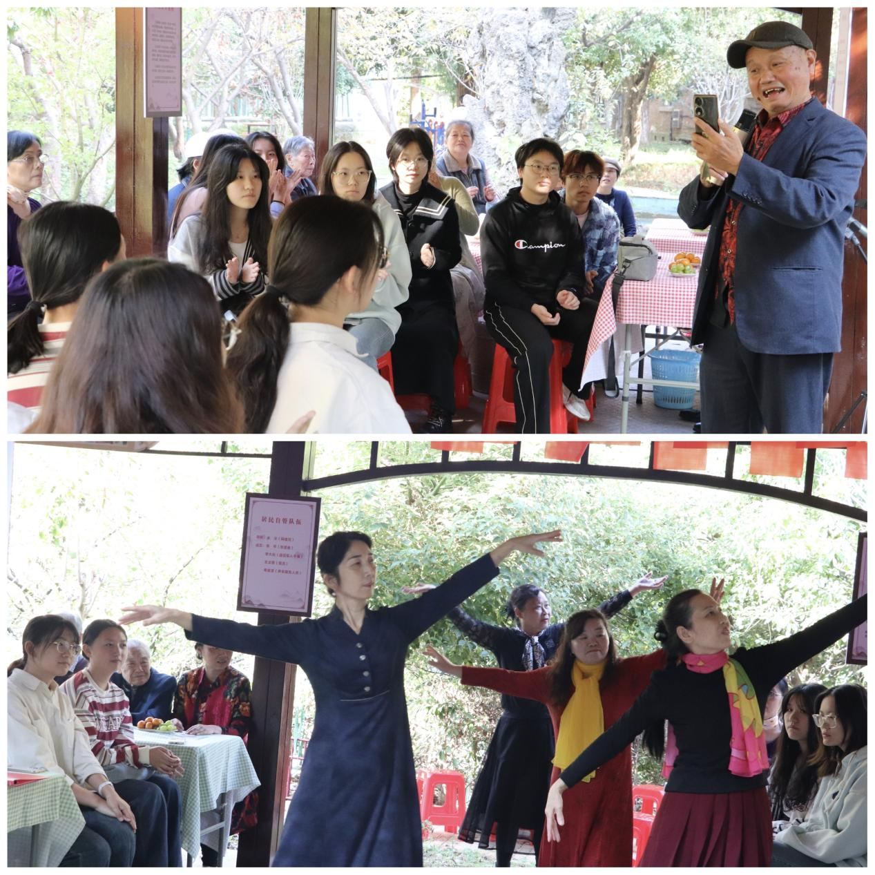 除了社区爷爷奶奶的倾情表演外,天使之翼志愿服务队的队员们也精心为爷爷奶奶们准备了惊喜小节目。梅诗琪和陈心怡同学唱响《最炫民族风》,活跃现场气氛。陈誉鑫和朱莎莎同学一曲《荷塘月色》引的一位奶奶现场为她们伴起舞来,贡献了一次惊喜的合作舞台。刘雪茹、吴婧、韦清妍、穆睿怡四位同学合作曲目《爱》,尽显青春活力,现场互动也变的精彩起来。值得一提的是,黄瓜视频