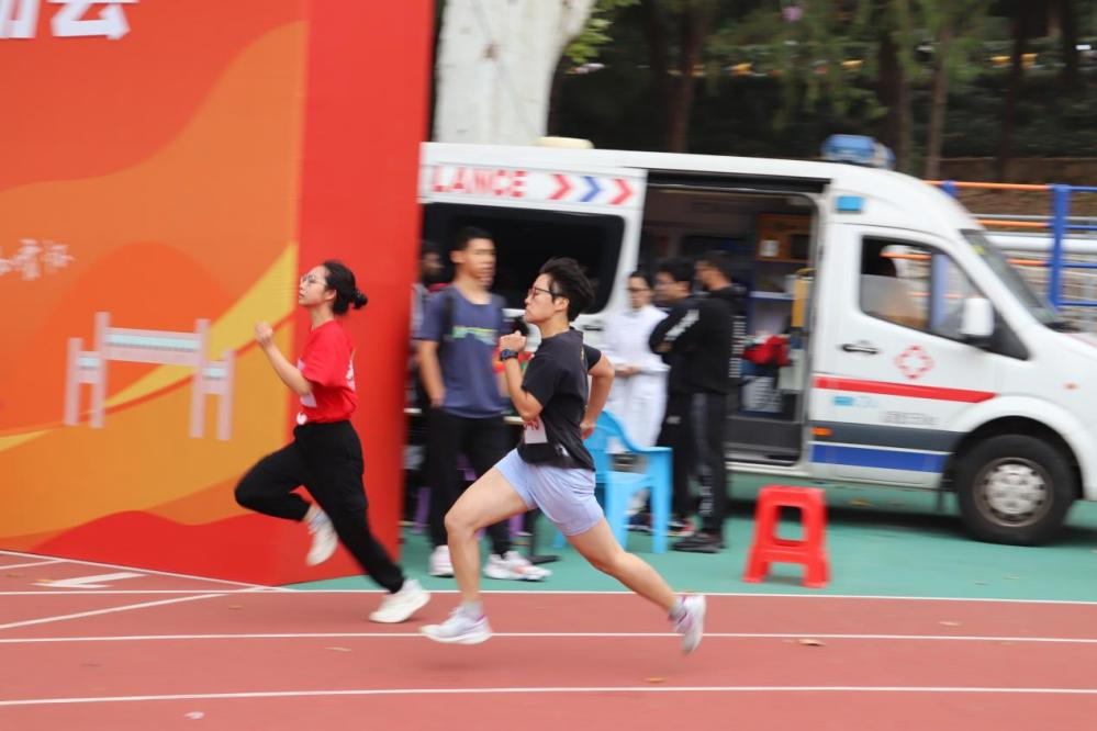 站在跑道上,男子100米兼200米运动员孙泉、200米兼400米运动员黄逸轩和800米运动员胡登峰目光如炬,每一米的冲刺都是对极限的挑战,为学院代表队增光添彩。