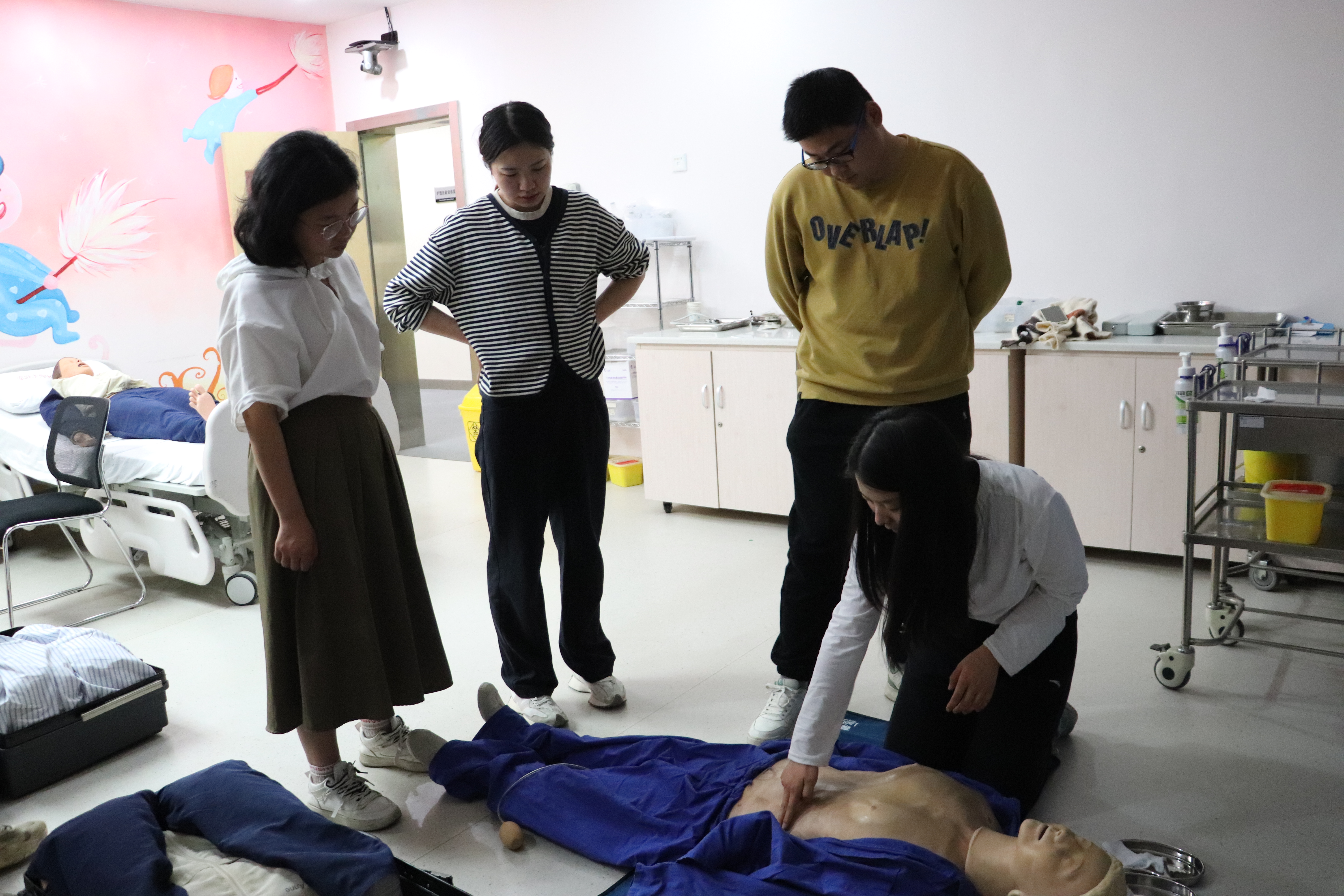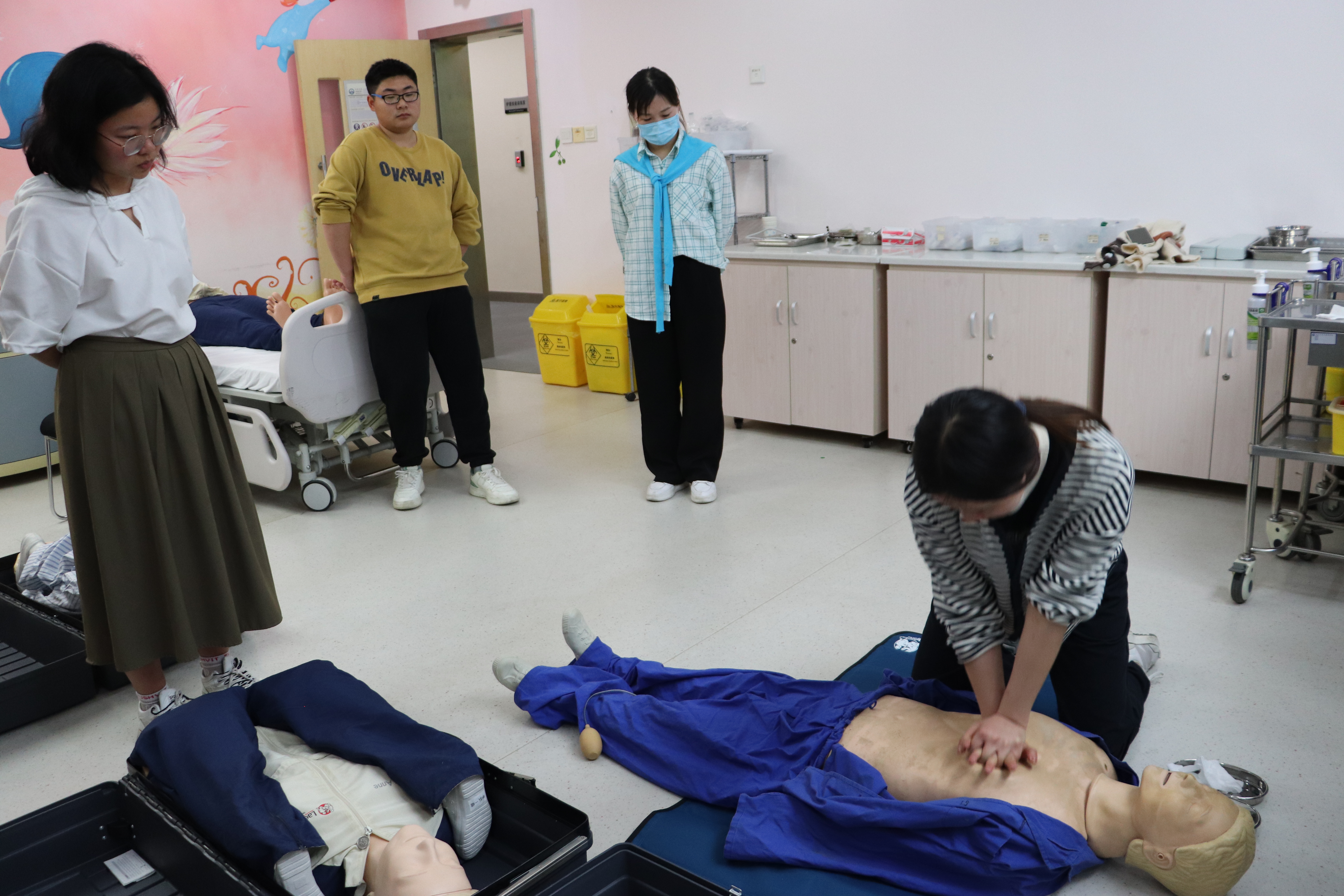 研究生导师张青老师带领心肺复苏(CPR)组志愿者前往实验室进行CPR专项培训,从CPR实施的目的、步骤,到CPR的实操细节,每位志愿者都格外认真学习并上手实操。相信在张老师的指导下,CPR组志愿者能为现场活动增添安全保障,提高现场活动参与者的急救能力。