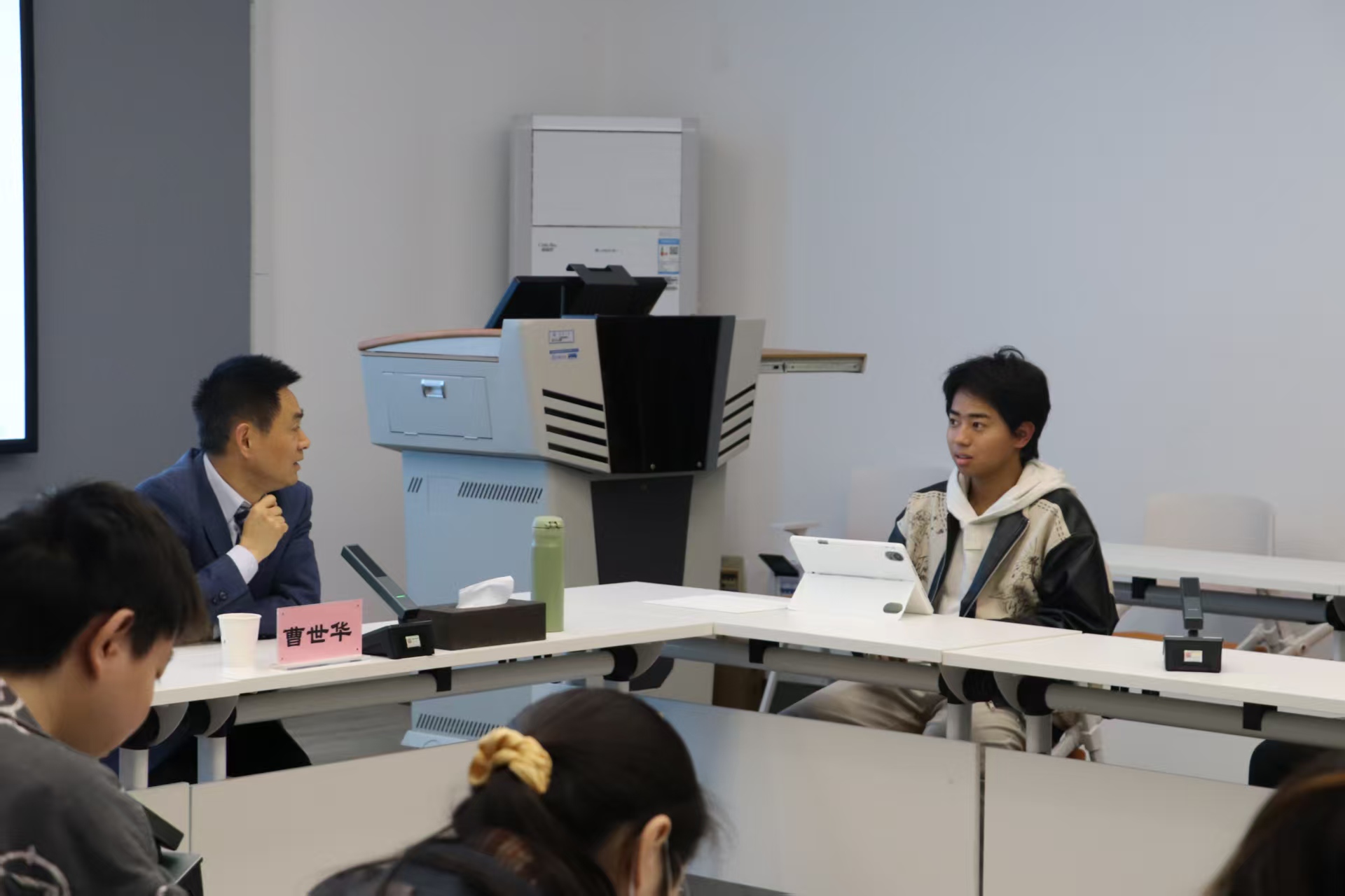 分享结束后,同学们围绕“护理信息学课程体系设计”“临床实践中技术应用的伦理边界”等话题踊跃提问。曹世华结合行业动态逐一解答,并建议学生关注智慧医疗、远程护理等新兴领域,在实践中深化对技术的理解与应用。