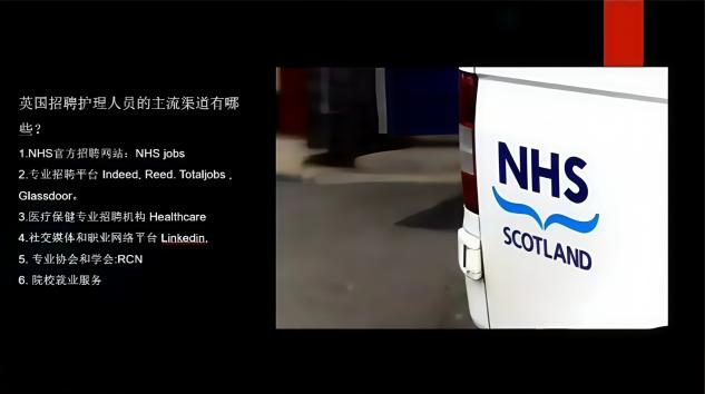 在职业发展专题环节,详细梳理英国护理高等教育与职业发展现状,特别说明理岗位薪资结构体系。孙敏强调,英国当前面临护理人力资源短缺问题,尤其在老年护理等领域存在显著人才需求,就业前景广阔。针对中国护理本科生升学需求,孙敏系统说明了英国护理研究生项目的目标院校选择、课程设置特点、申请核心条件及材料准备规范,并就签证申请流程与留学费用政策进行专业指导。她特别指出,中国学生可通过直接申请英国护理本科或完成NMC注册护士认证两条路径执业,同时提醒需重点关注英语能力证明等语言门槛要求。