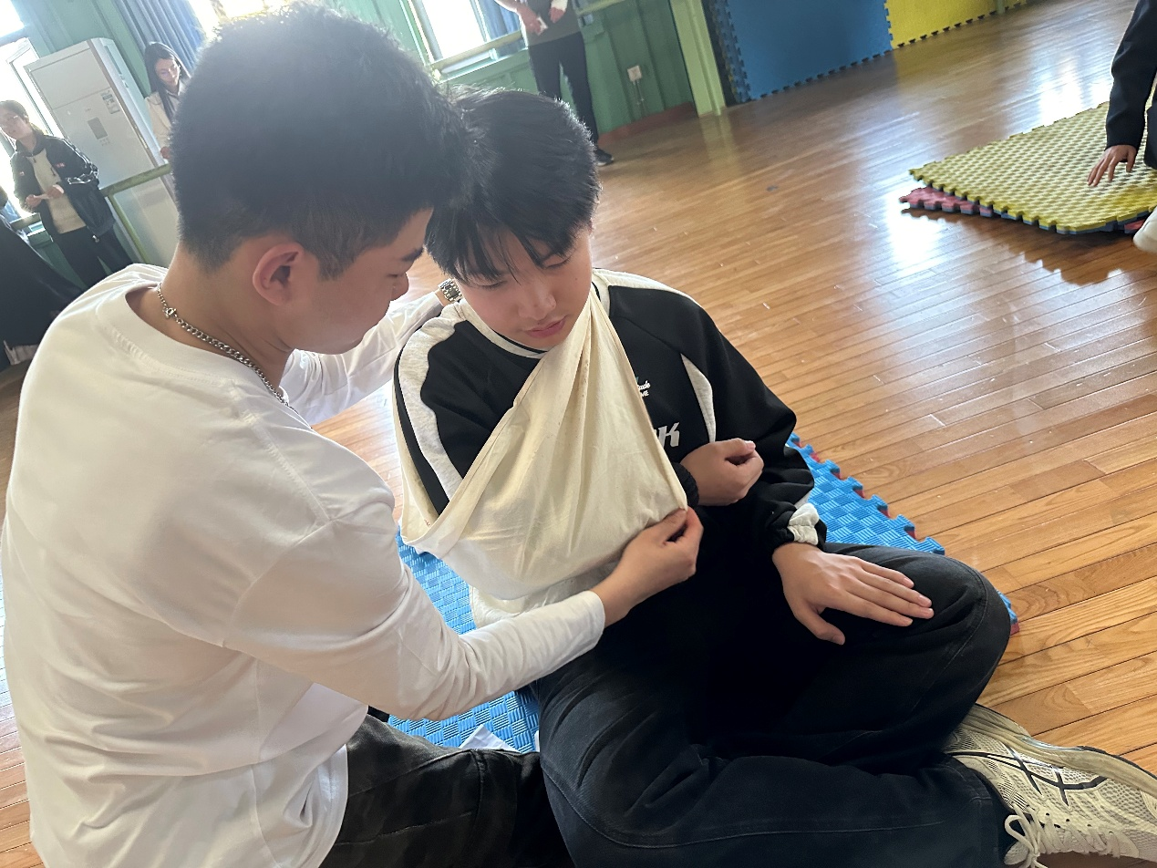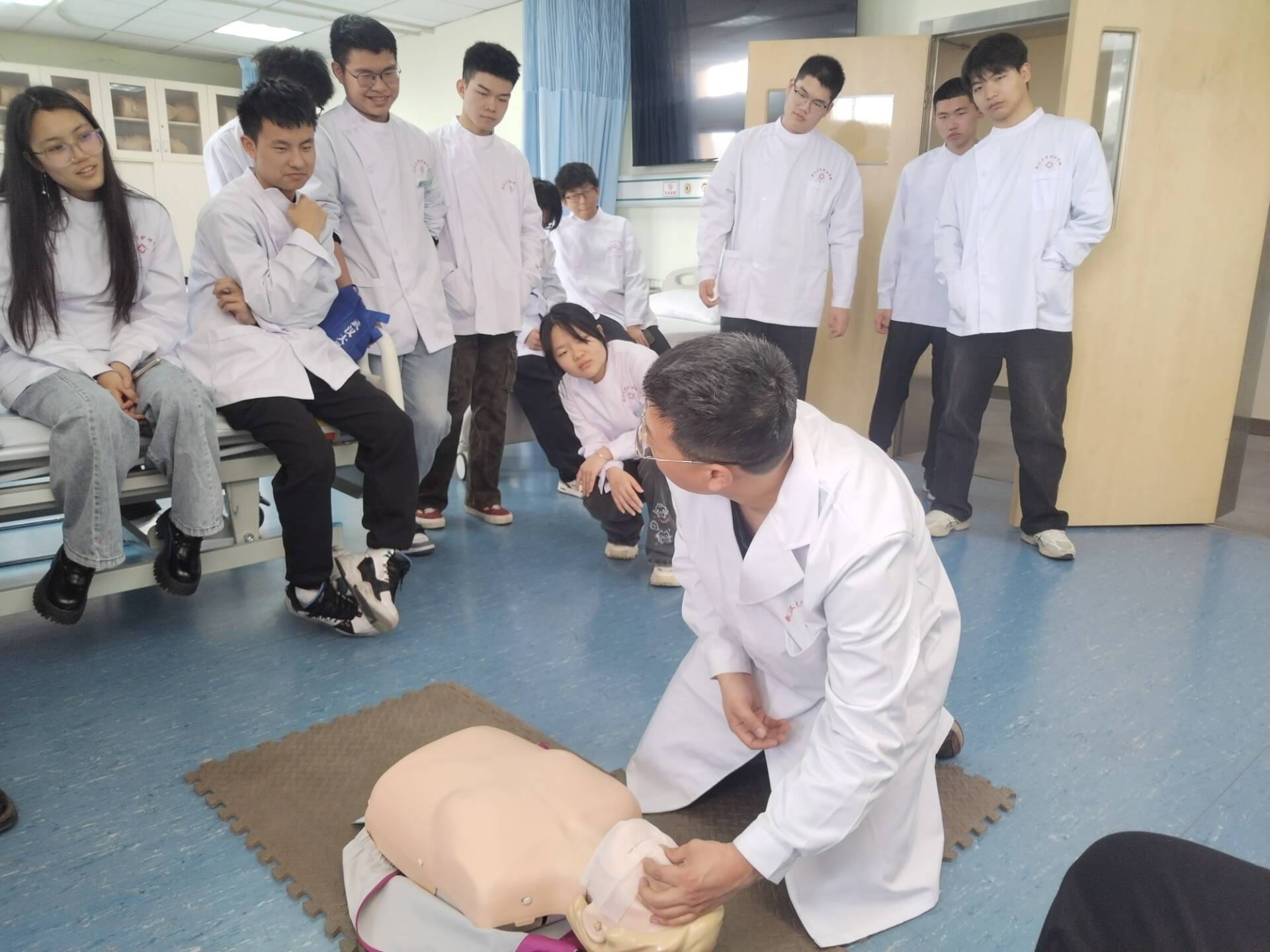 随后,团支书带同学们进入黄瓜视频 综合模拟实验室。张旭老师详细讲解了止血带绑扎、骨折固定、CPR等急救技能,并亲自示范。同学们听后跃跃欲试,立即投入实践。在老师指导下,大家力求动作标准,不仅加深了专业知识理解,还锻炼了应急处理能力,为情景剧推进做好了准备。