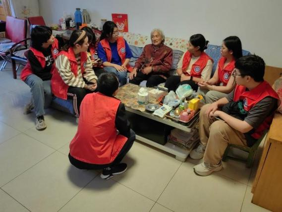 健康宣教活动结束后,碧苑花园社区团支部副书记易巍带领部分志愿者上门拜访了几位独居老人。在敲开第一扇门时,熊友琴奶奶以热情的笑容迎接了所有志愿者。熊奶奶的腿脚不便,在交谈过程中也向志愿者诉说了她腿骨诊治的经历。从她的口中,志愿者们了解到了当前独居老人接受医疗服务的一些生活阻碍,如行动不便、医疗服务、使用电子设备困难等,志愿者也表示今后将结合老人的具体的、实际的需求开展相应的志愿服务。