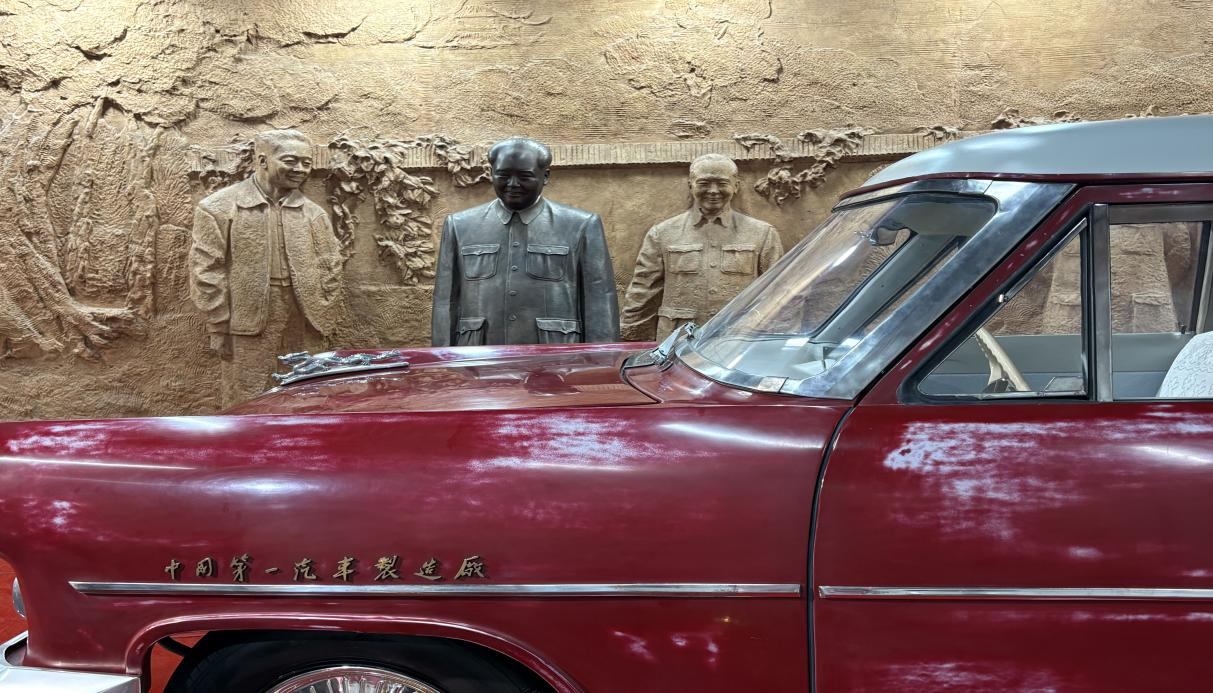 活动伊始,实践团队员们走近一汽老厂区,一尊饶斌厂长的雕像映入眼帘,其身姿挺拔,目光坚毅。饶斌作为中国汽车工业的奠基人和开拓者,带领团队在长春荒原上建起了现代化汽车城,并领导建成了第一、第二汽车制造厂,被誉为 “中国汽车之父”。队员们驻足凝视,深深感受到老一辈建设者们无畏艰难的开拓情怀,从工业建设的独特视角,体悟到新中国成立初期百废待兴之时,建设者们实业报国的壮志豪情,这也成为实践队触摸党史记忆的生动一课。
