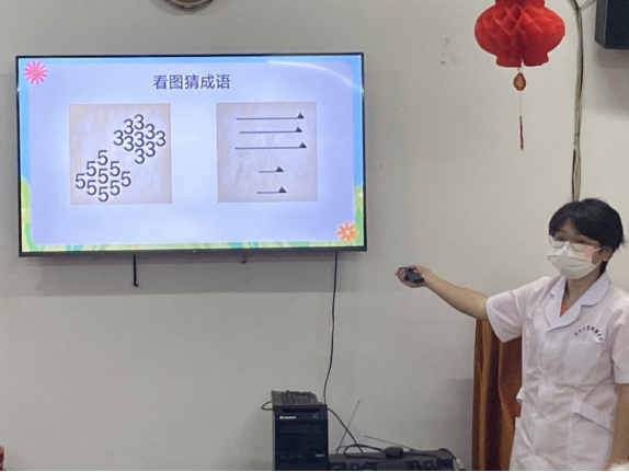 2020级本科生尹雪霖通过生动的案例和图表,深入浅出地向老人们介绍了老年痴呆的症状及危害,强调了早期干预的重要性,并分享了日常生活中的预防措施,如戒烟限酒、保持锻炼、保持社交活动、膳食均衡等。为帮助老年人们更好了解自己的认知能力,活动中还设置了认知能力检测互动小游戏。通过游戏锻炼自身认知能力。这一环节不仅带来了欢乐和活力,还增强了老年人们对预防老年痴呆的信心。老人们争着回答问题,现场气氛异常活跃。