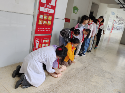 活动开始,各班主讲人介绍CPR的基本知识,利用图片和动作演示等方法将内容通俗易懂表达出来,使学生们更好理解。在主讲人生动有趣的讲课过程中,学生们都认真听讲并积极主动回答问题。在心肺复苏演示时他们也仔细观摩,跟随老师一起做。