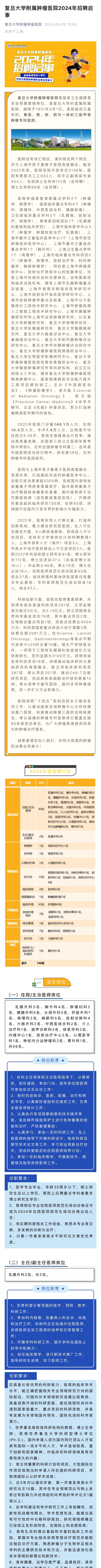 复旦大学附属肿瘤医院校园招聘启事(10月19日医学部宣讲会)