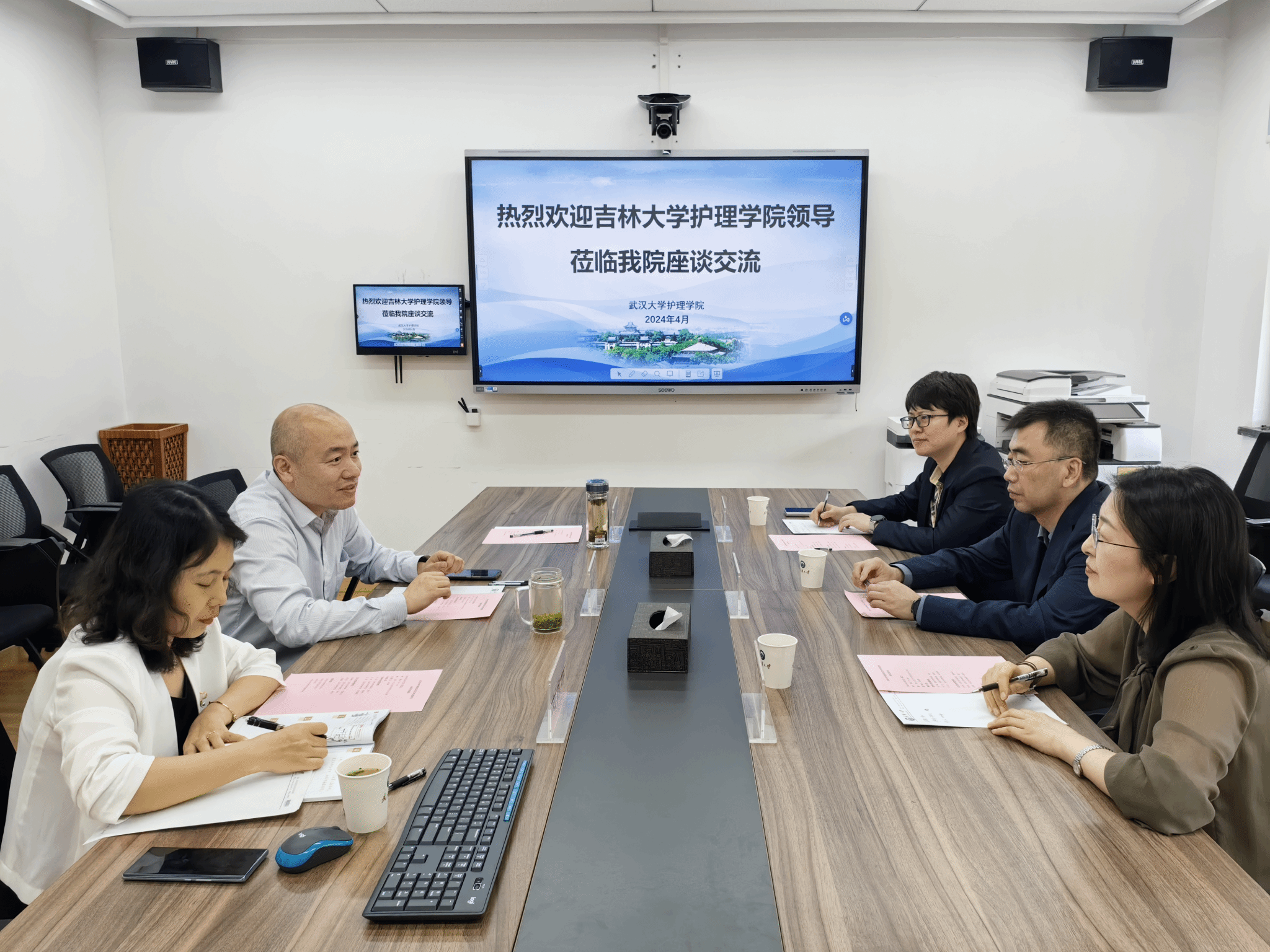 党委书记赵昊鲁、院长周芙玲、副院长刘燕群参加座谈,双方就科研合作、人才引进、学生培养等多方面展开交流。