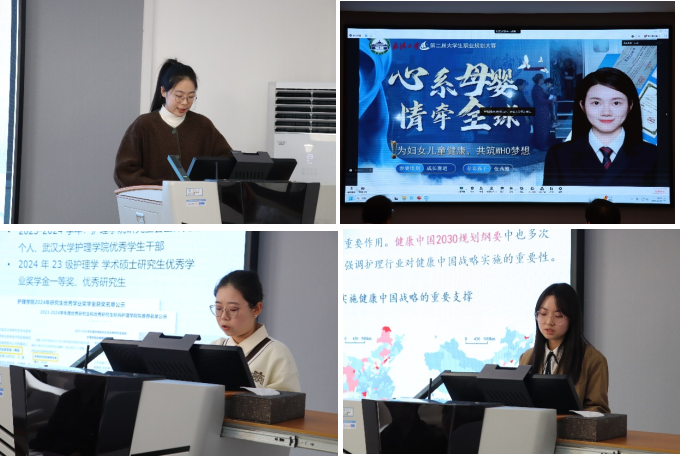 职业规划大赛分为选手展示和评委点评两个环节,选手们依次上台,就自己的职业规划、目标以及现阶段的学术、实践、实习等经历进行了精彩展示。不论是投身基层医疗、扎根一线护理岗位,还是致力于护理学科的学术研究,抑或是积极进入医院管理岗位,立志成为一名管理型护理人才,选手们都展示了积极向上、勇于担当的精神风貌。通过他们的展示,我们看到了护理专业青年人才在各个领域的无限潜力和发展前景。