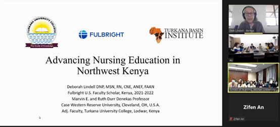 然后,Deborah Lindell教授以她近五年的项目经历为导入,就她正与图尔卡纳大学联合开展的“推进肯尼亚西北部的护理教育”项目的合作团队、资金支持、项目目标、项目进展、约翰·科特的变革管理模型(John Kotter’s8 Step Change Model)在项目中的具体运用以及项目内容中的“教学环节”与“研究设计”等方面进行了详细的介绍,并带领与会师生对图尔卡纳郡、肯尼亚、中国和世界的健康数据进行了比较分析,让与会师生进一步对社区护士的角色职能、社区护理服务的独特性、社区护理实践的重要性及人类健康的社会决定因素有了更深刻的认识。