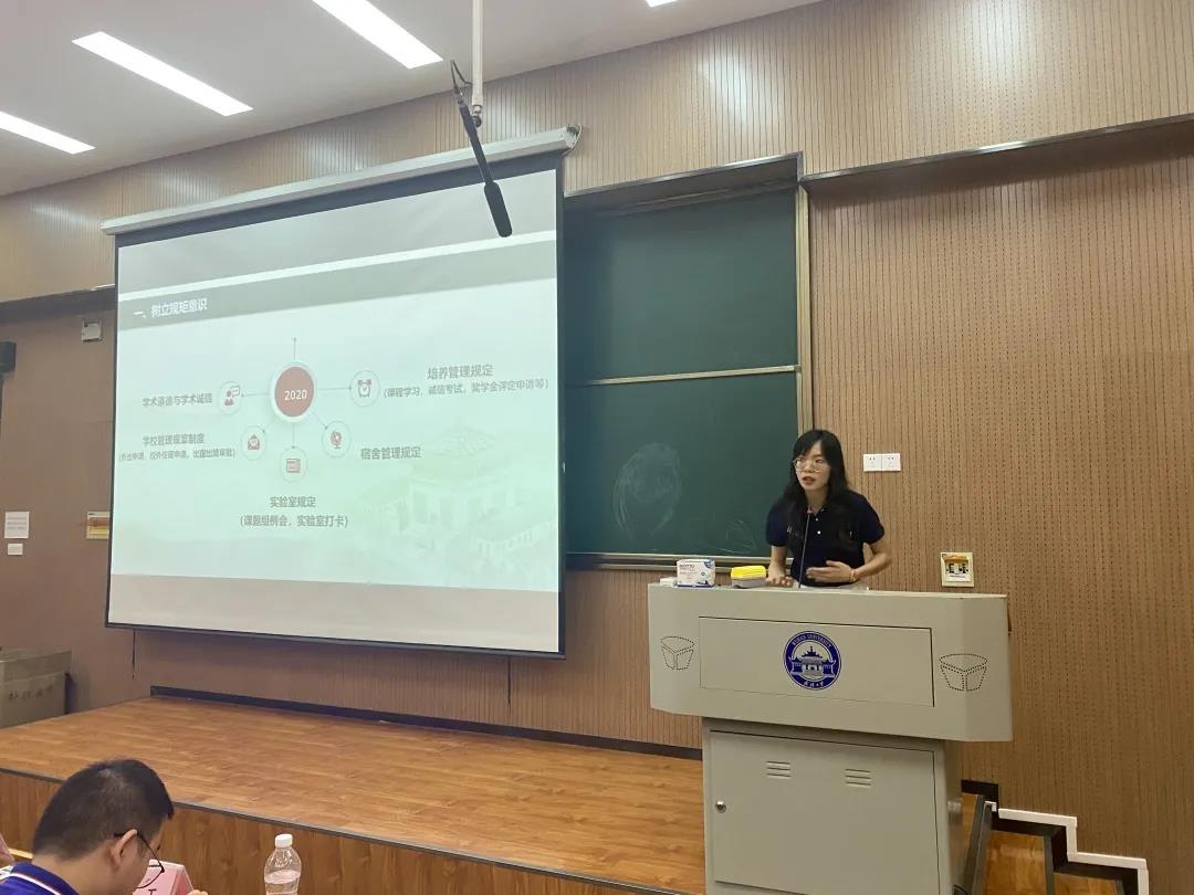 张英老师为新生们介绍了研究生培养方案。她希望同学们能够利用好学校的资源和平台,拓展自己的见识,为未来的发展打好坚实的基础。