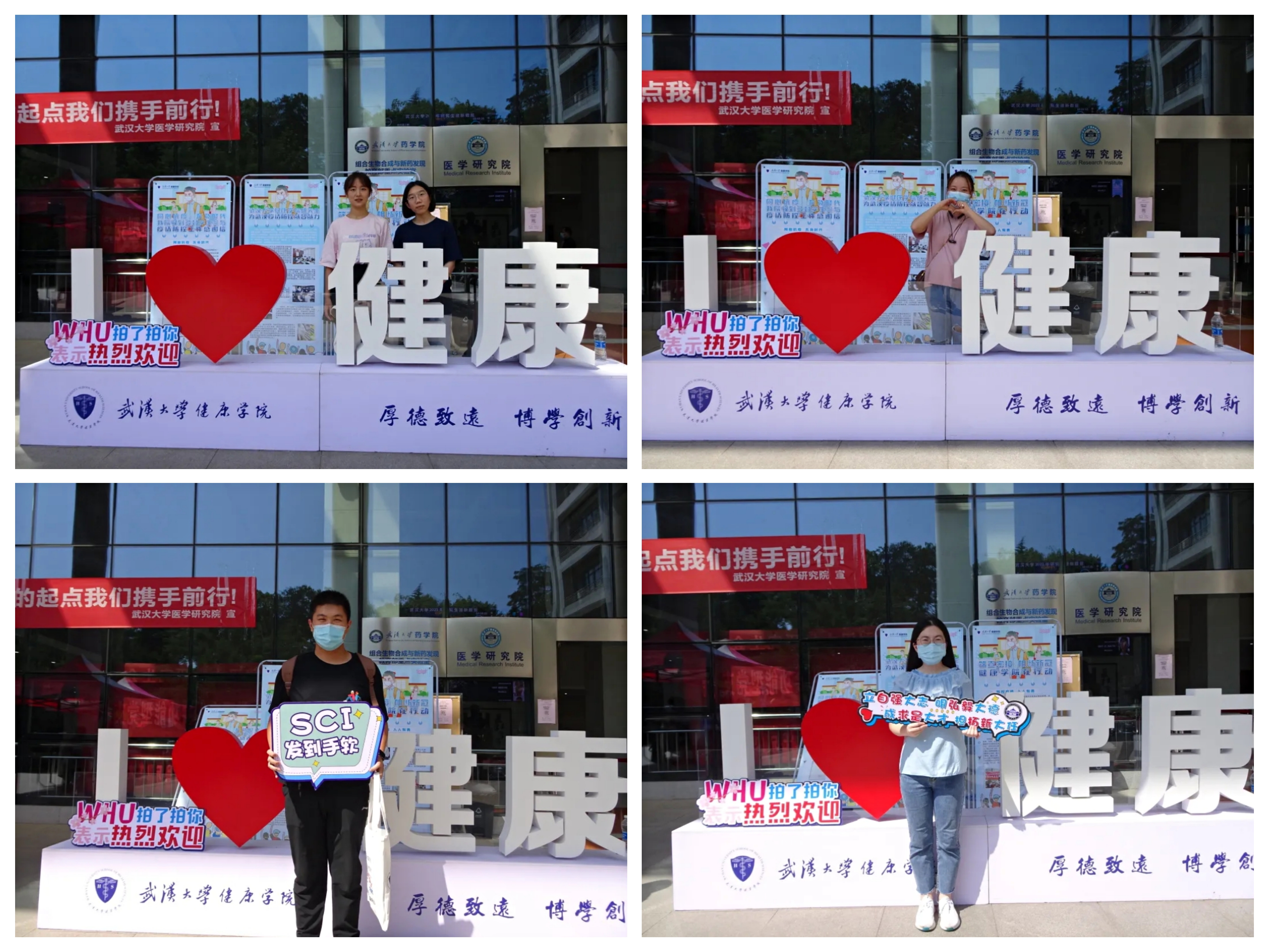 可爱的“I ♥健康”标识收到了新生们的喜爱,许多萌新们都与之合影留念,记录下这有意义的一天。