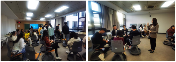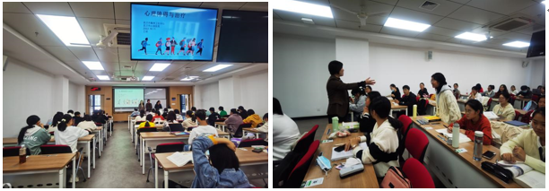 邀请行业专家,来自于武汉市精神卫生中心的心理治疗师张娟护士长、王艳护士长、辛迪、黄文娟在工学部A306参与22级本科生普通心理学的教学。授课内容为心理障碍与治疗。课程采取理论授课和团体体验相结合的形式进行。第一部分是三十分钟的理论讲授,王艳老师从心理学的误解、心理学的范畴、心理健康和心理障碍的动态进行、心理治疗的形式等方面进行讲解,同学们认真聆听,纷纷表示学到了科学有趣的心理学知识。
