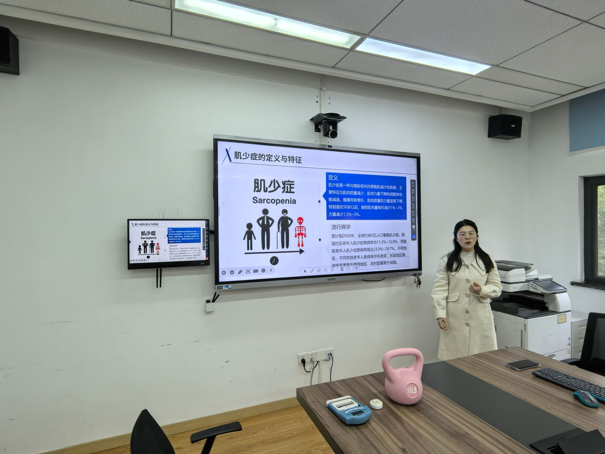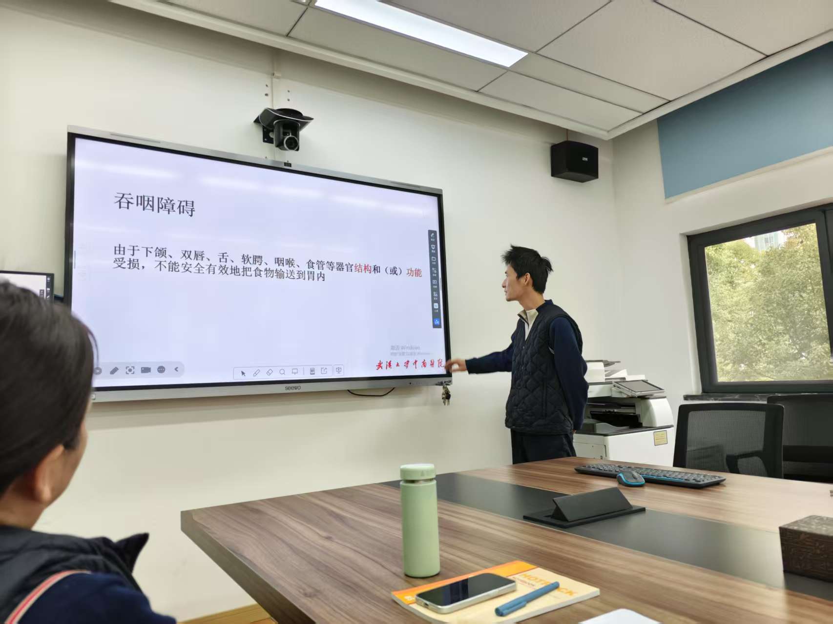 杨冰香认为,《康复护理》课程邀请临床教师融入,将康复护理最新理论与实训有机结合,对促进学生深入系统理解应用康复护理技能具有重要意义。中南医院的文曹丽老师和江志国老师分别进行了题为《肌少症的筛查》和《吞咽障碍的管理》的授课。文曹丽老师从肌少症的发生、肌力评估、下肢肌力测试等方面,对肌少症的筛查进行了系统全面的阐述,其中,关注与学生的互动、提出拓展问题等,促使学生对肌少症筛查的具体测试方法深入理解。江志国老师通过视频展示,讨论吞咽障碍给个体带来的具体危害,应用临床实际案例,讨论吞咽障碍的具体筛查、评估、及功能训练方法,明确实施举措的原理、阐述操作要点,加强学生对吞咽障碍评估及功能训练方法的理解。