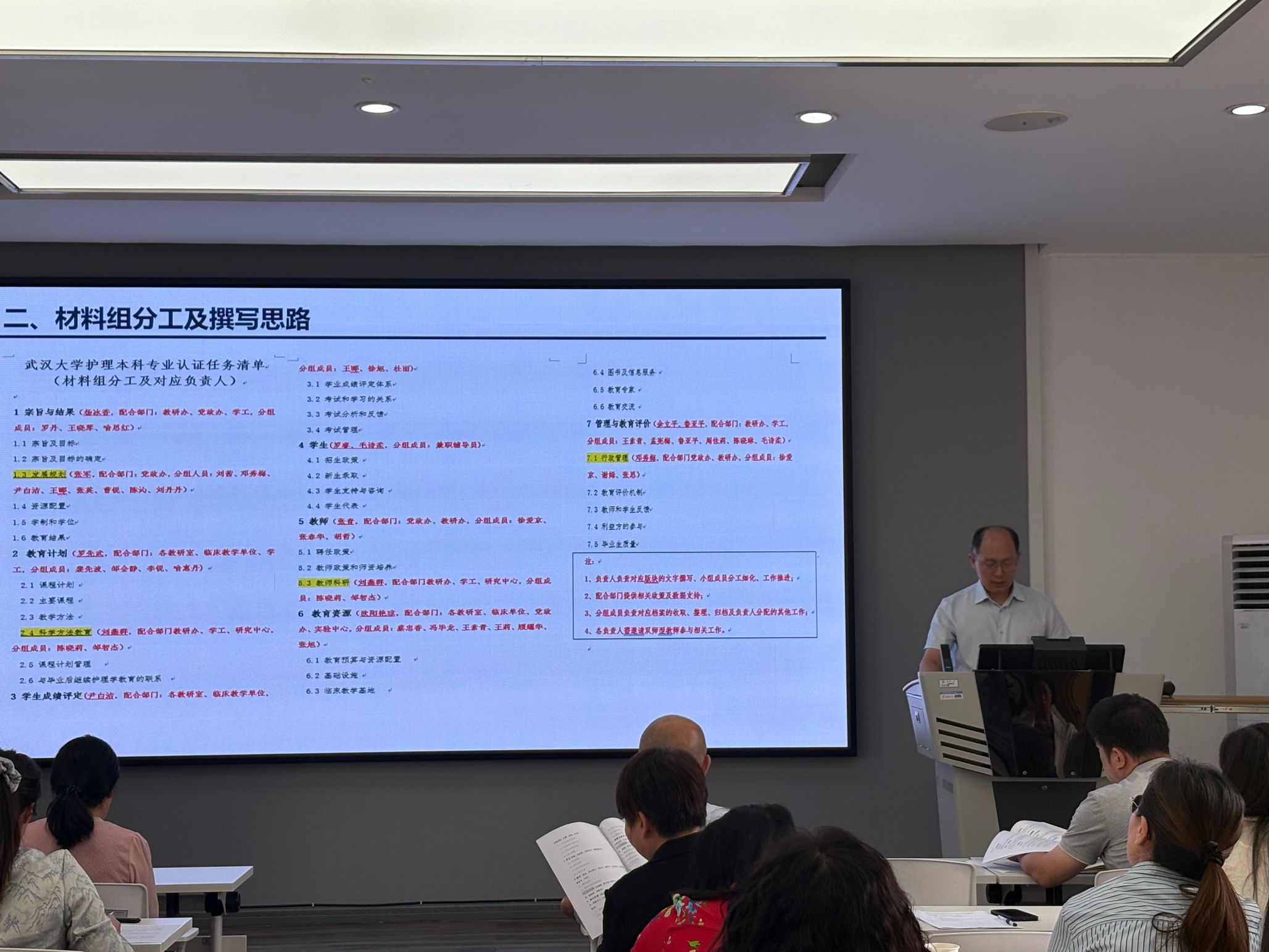会上,材料组组长罗先武围绕护理学本科专业认证标准(2024 版),详细介绍了自评报告撰写工作安排,明确材料组分工、撰写思路及工作进度计划,并组织各小组展开分组讨论,针对各组提出的难点和困境现场答疑解惑。