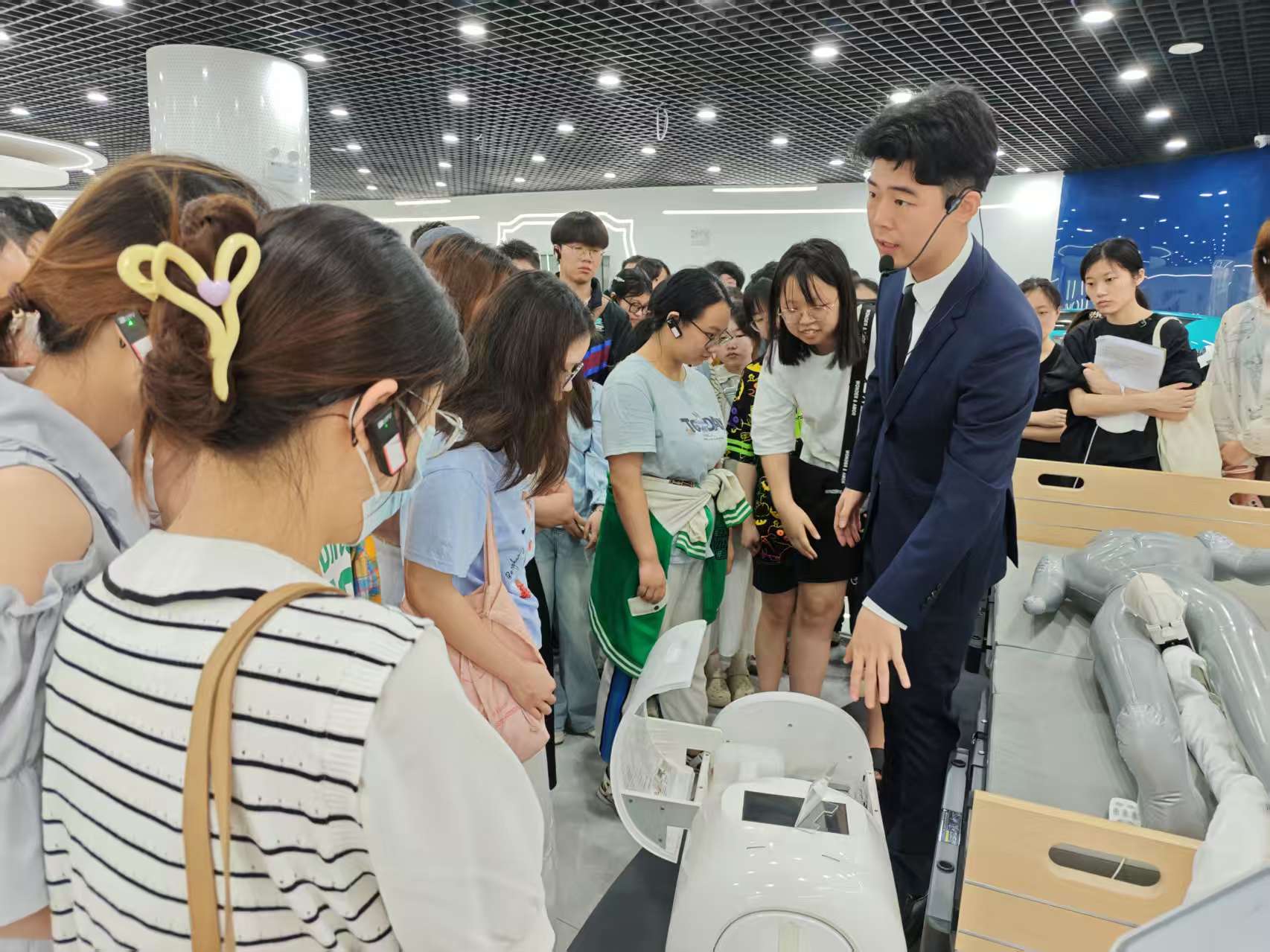 在中心技术人员的陪同下,师生们依次参观了智能辅具展示厅、居家适老化样板间和儿童康复展区。同学们亲身体验了智能助行设备、AI交互辅具、可穿戴式康复训练设备等前沿科技产品,并观摩了不同智能化辅具在生活中的应用场景。中心专家结合我国老龄化社会需求,详细讲解了辅具设计的人性化理念、技术突破及实际应用案例,现场解答了护理专业学生关于辅具适配、临床护理协同等问题的疑问。