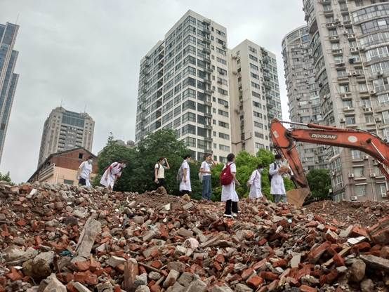 5月17日下午,余立平老师带领团队成员前往水果湖街青鱼嘴社区一片拆迁后的居民区,看望一对智力障碍姐妹和她们年事已高的母亲。在给予人文关怀和医疗支持之余,同学们按照课程所学对社区环境、支持系统等进行了评估。