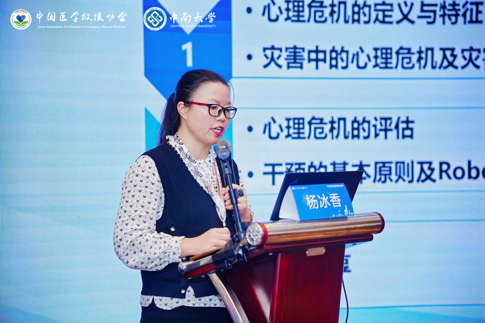 会议期间,护理救援分会首届高水平学术研讨会同步举行。杨冰香副会长围绕“灾害救援中的心理危机干预”主题作专题讲座,系统介绍了心理危机的概念与特征、灾害情境下心理危机的表现、心理危机的评估以及干预的基本原则等内容,结合救援护理实际,探讨了心理危机干预在医学救援中的重要作用。