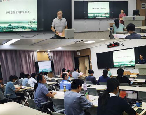 随后,《护理学导论》课程负责人张青老师、《护理学基础》课程负责人罗丹老师、《健康评估》课程负责人罗先武老师、《护理计划与实施-妇儿》课程负责人欧阳艳琼老师、《护理管理与评价》课程负责人顾耀华老师以及《急危重症护理》课程负责人裴先波老师依次向与会人员介绍了本门课程的实施和建设方案概况,均表示将以“金课”标准“严要求、精把关、高控制”来有效提升课程教学质量,提高学生学习效率。