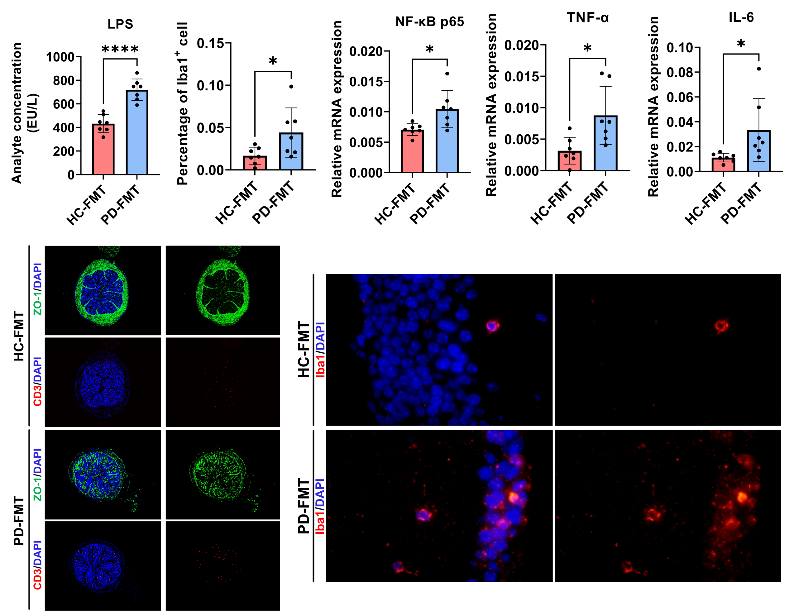 图4 产前抑郁孕妇菌群移植小鼠表现为肠道通透性增加和海马神经炎症