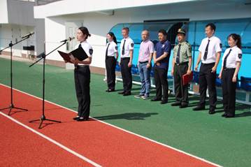 首先是学生代表陈春如以“爱我国防、强国有我”为主题进行发言,在演讲中她谈及了自己对于军训的体会和感受,结合我国国防事业的发展阐明了国防的重要意义。最后,她代表全体同学做出以下三点承诺: