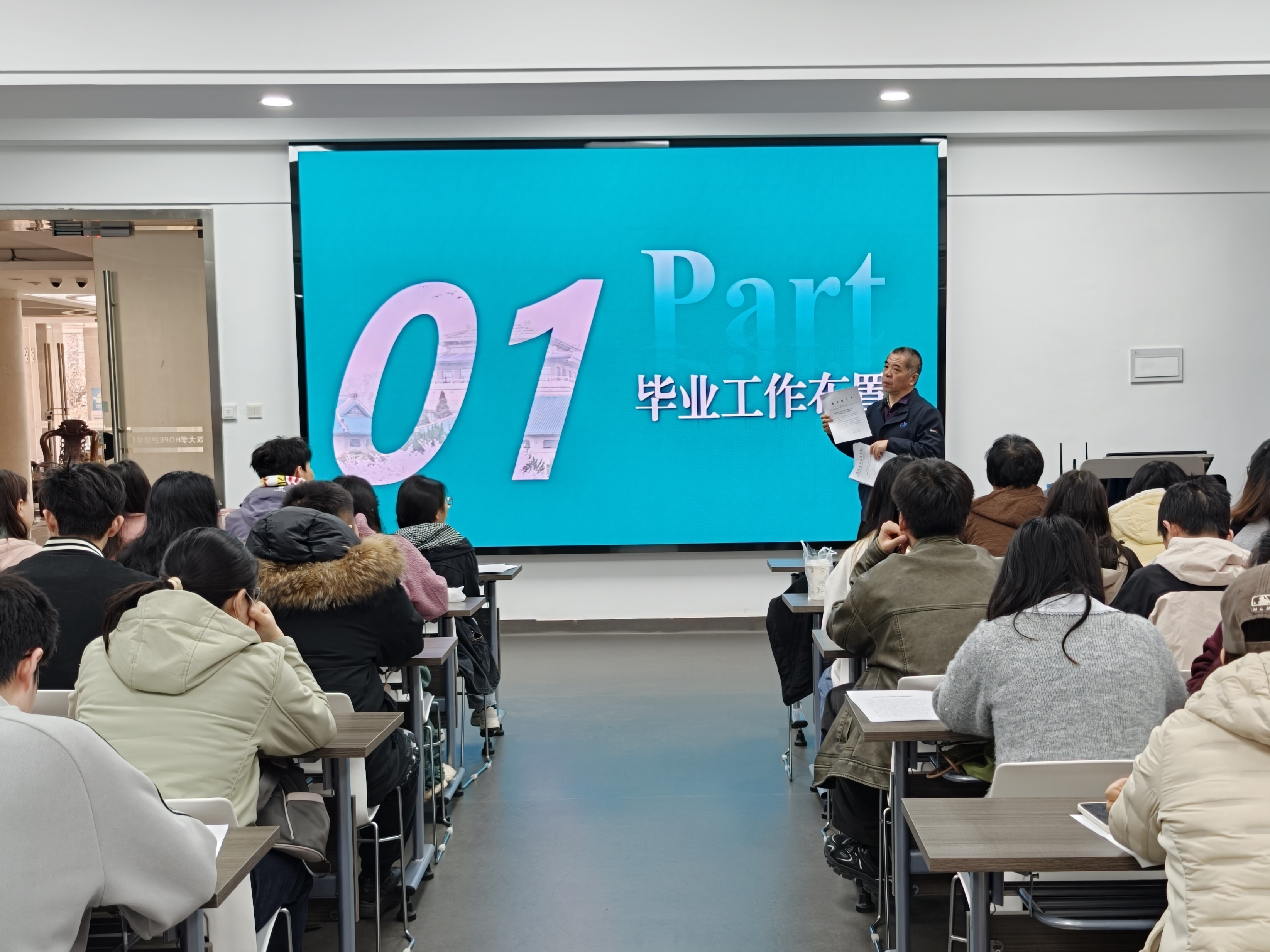 先后开展分年级新学期主题班会,全方位为学子成长保驾护航,助力同学们凝心聚力、笃行致远。3月5日至6日,学院分批次为2023级、2024级、2025级本科生召开新学期开学主题班会,由辅导员毛诗柔、兼职辅导员胡金源主持,各年级全体学生分别参会。班会伊始,老师与同学们亲切交流寒假见闻,分享学校与学院过去一年的发展成就,开展校史教育,强化同学们的校荣院荣意识与青春担当。