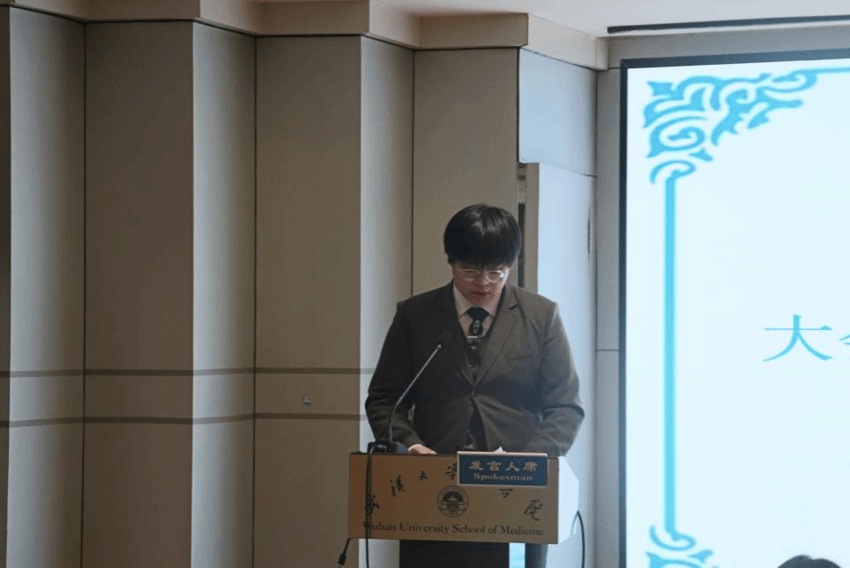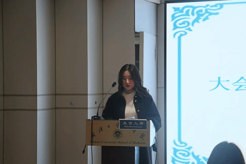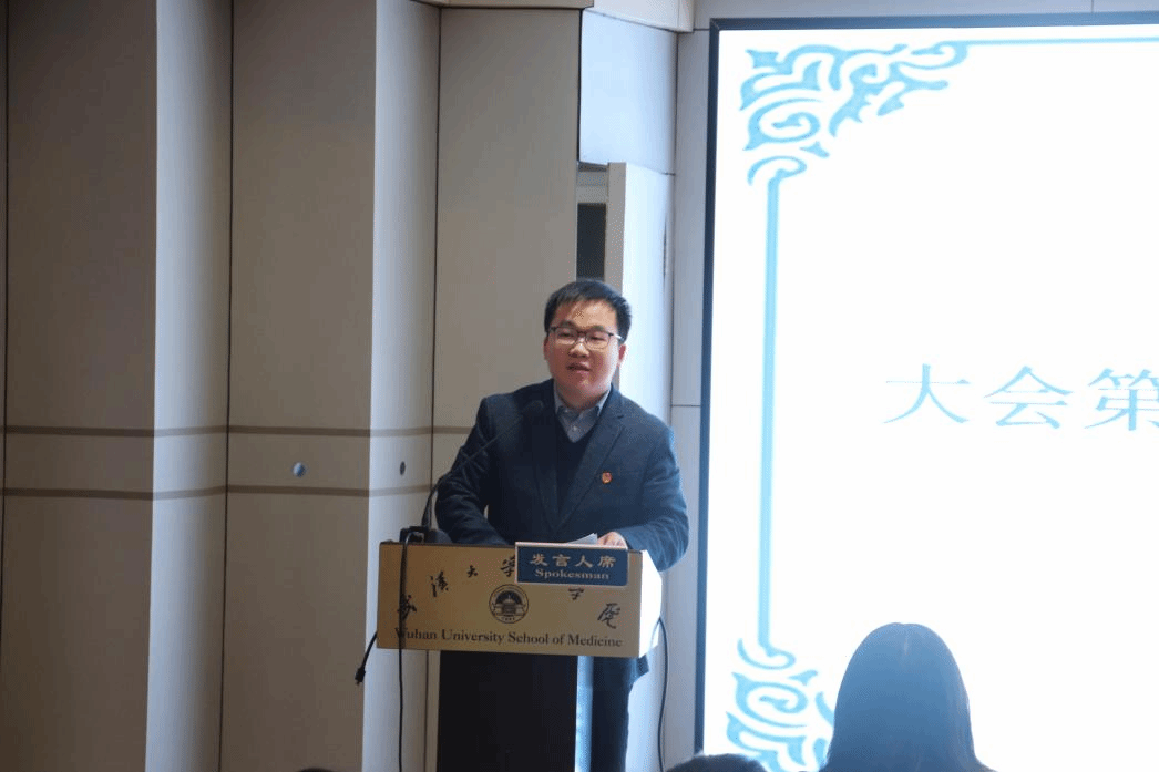 团委副书记韩琦上台致辞。韩琦老师首先代表学校团委对本次大会的胜利召开表示热烈的祝贺,并对过去一年学院学生会的表现给予了高度肯定。他对学生会提出四点建议:一是加强自身建设,明晰“打铁必须自身硬”的道理,不断提升综合管理能力;二是深化改革创新,结合专业特色,发展“大专业”“大品牌”项目;三是加强与班级的沟通联系,进一步深化党团联系群众的责任;四是定期对工作进行总结反思,不断提升学生会服务同学的能力。同时,他也对各位同学提出希冀,希望同学们能够树立远大理想,切实感悟百卅武大精神,勤奋学习,矢志奋斗,不断提高自身综合素质。