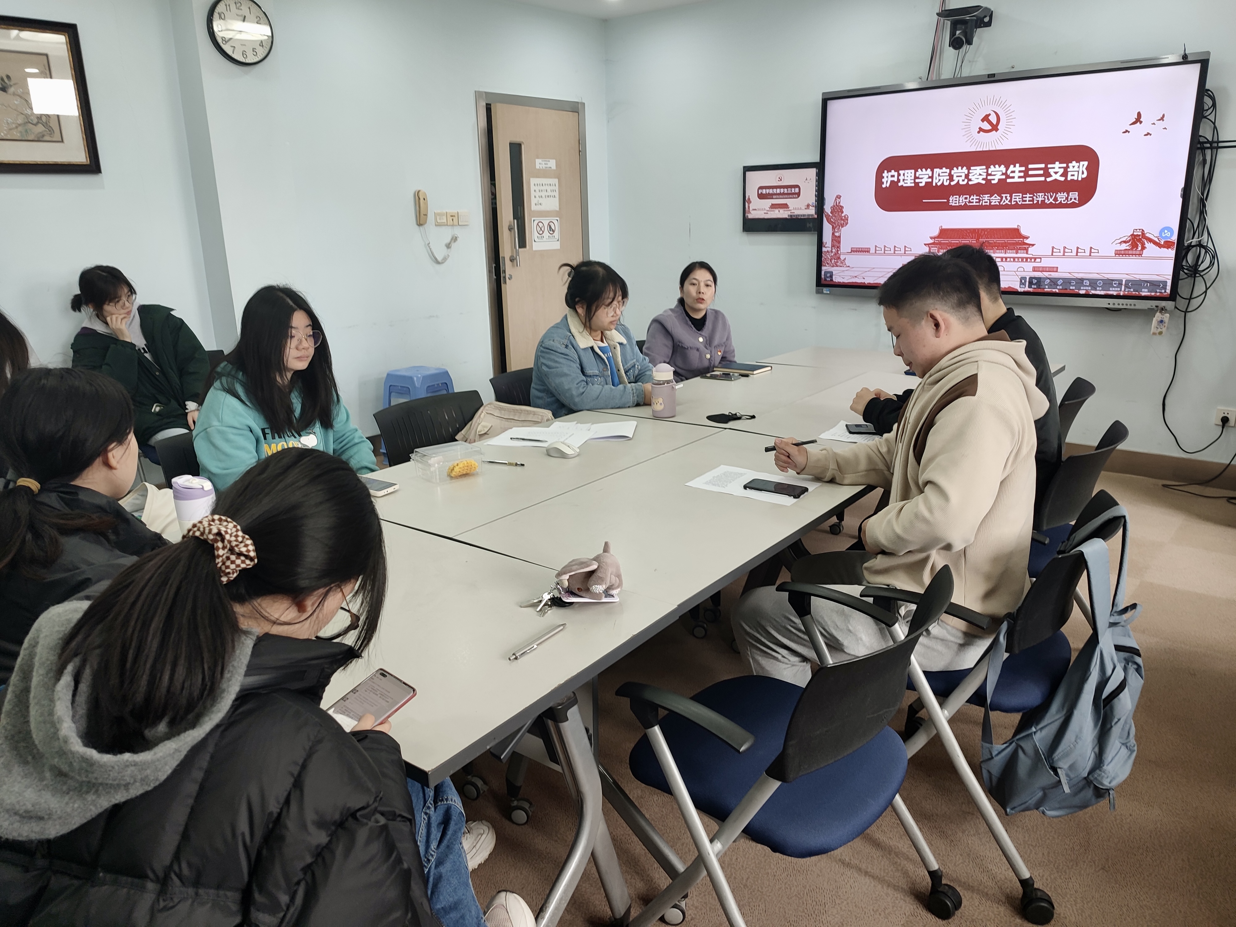 学生三支部在医学部2602召开2022年度组织生活会和开展民主评议党员。副院长、院党委委员刘燕群列席参加民主评议党员大会,会议由支部书记王丽主持。