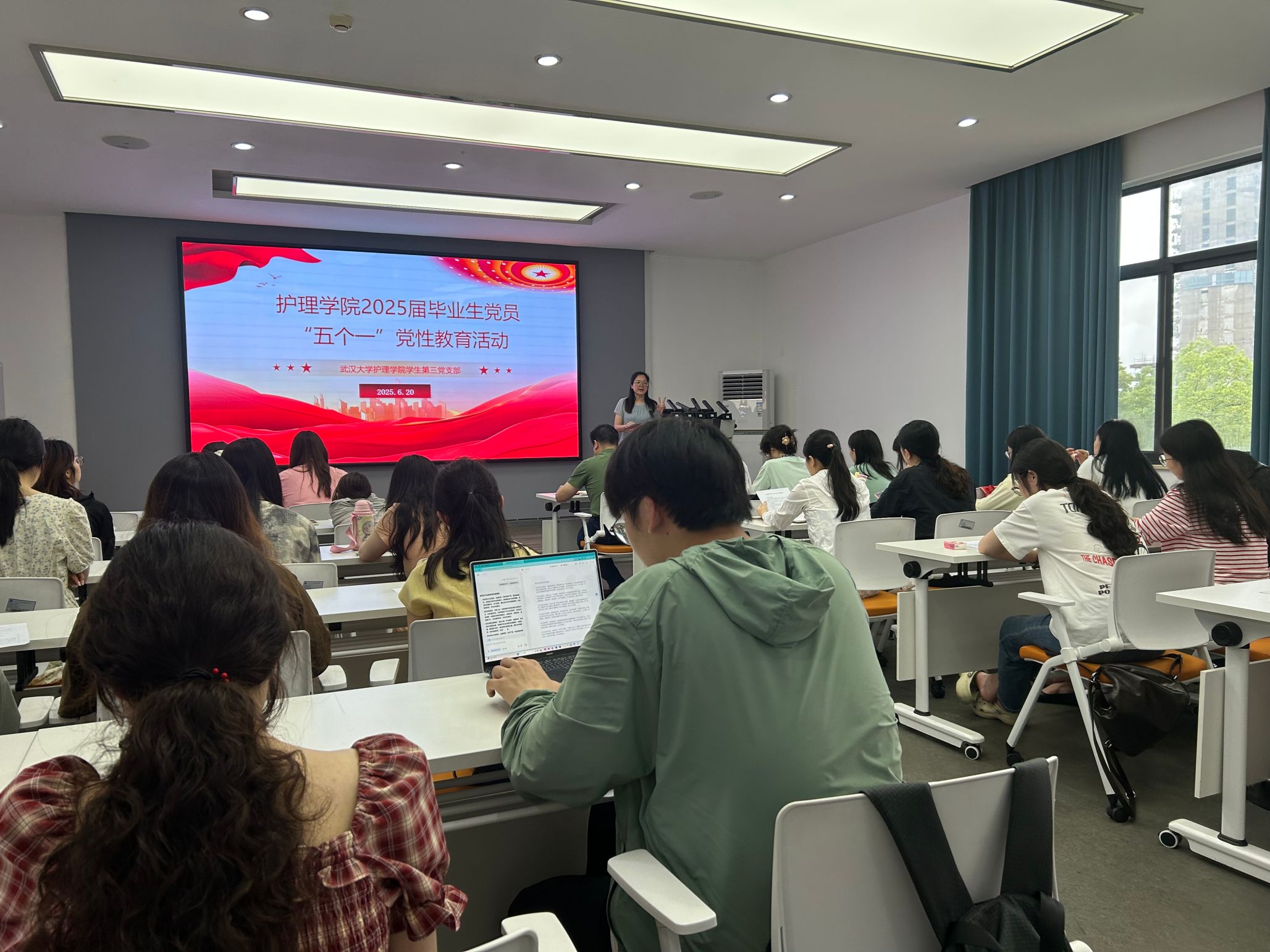 此次“五个一”党性教育活动,既是对毕业生党员的一次深刻思想洗礼,也是学院落实立德树人根本任务的生动实践。未来,全体毕业生党员将带着母校的嘱托,以坚定的理想信念、扎实的专业素养和强烈的责任担当,在新的人生阶段续写武大护理人的奋斗篇章,为健康中国建设贡献青春力量。