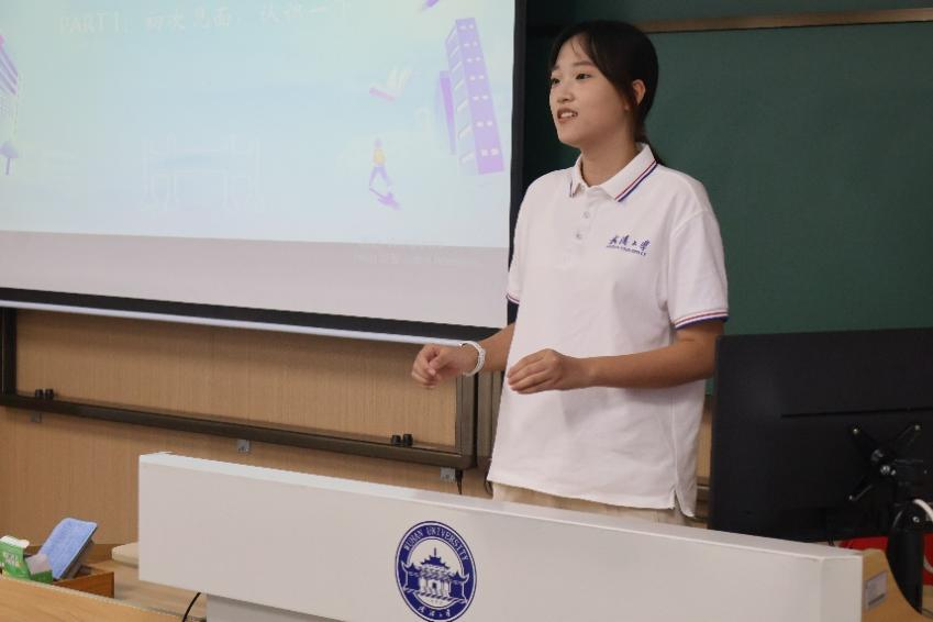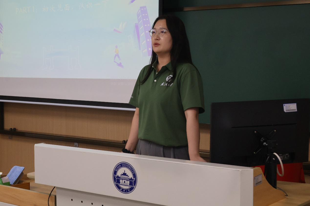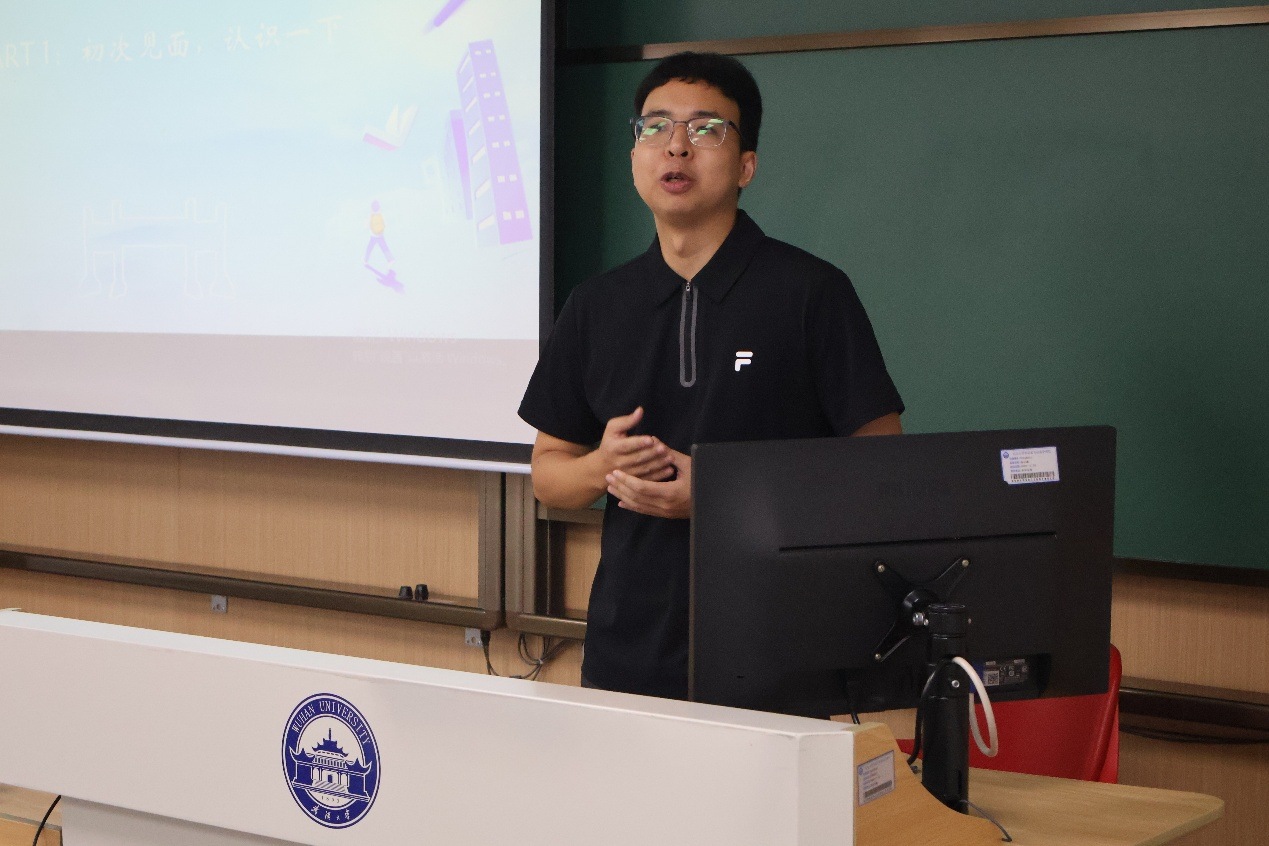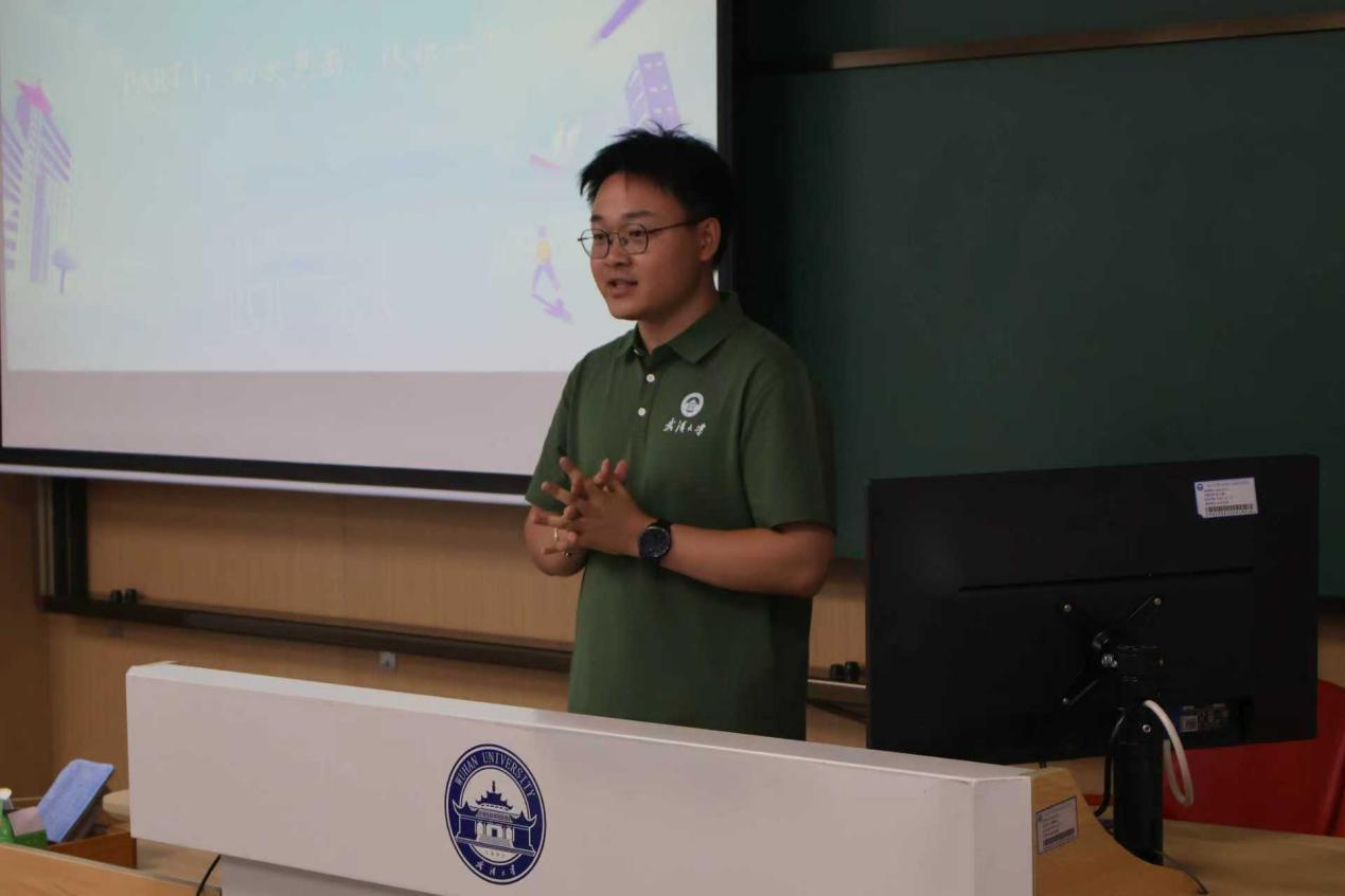 兼职辅导员胡金源老师以“同行者”身份与新生亲切交流。作为刚从武大本科毕业、保研本校的“过来人”,他结合自身经验,分享了不少实用的成长建议:既鼓励大家在专注学业的同时,积极参与实践活动,在体验中提升综合能力;也建议大家多留意学科领域的不同方向,慢慢找到自己真正感兴趣的领域。同时,他也贴心提醒新生,刚入大学难免迷茫,允许自己慢慢适应大学节奏。最后,他承诺会以朋友的姿态倾听大家的烦恼,无论是学业疑问还是生活困扰,都可以随时交流、共同解决,这份真诚让新生们切实感受到了同辈般的亲切与可靠。