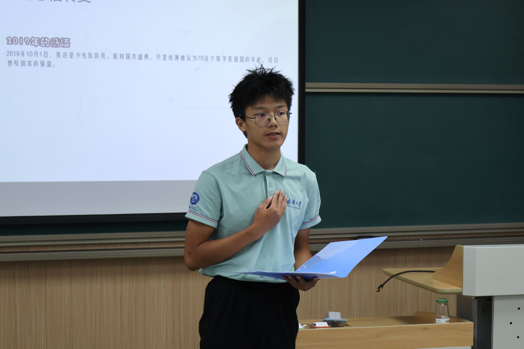 聚焦故土记忆,激活历史共鸣。另有同学以家乡抗战史实为核心,详细讲述“血战台儿庄”中河南籍将士浴血冲锋、“川军出川抗战”的悲壮事迹。这些扎根故土的抗战故事,让历史不再是书本上的文字,而是家乡土地上可感、可忆的鲜活印记。