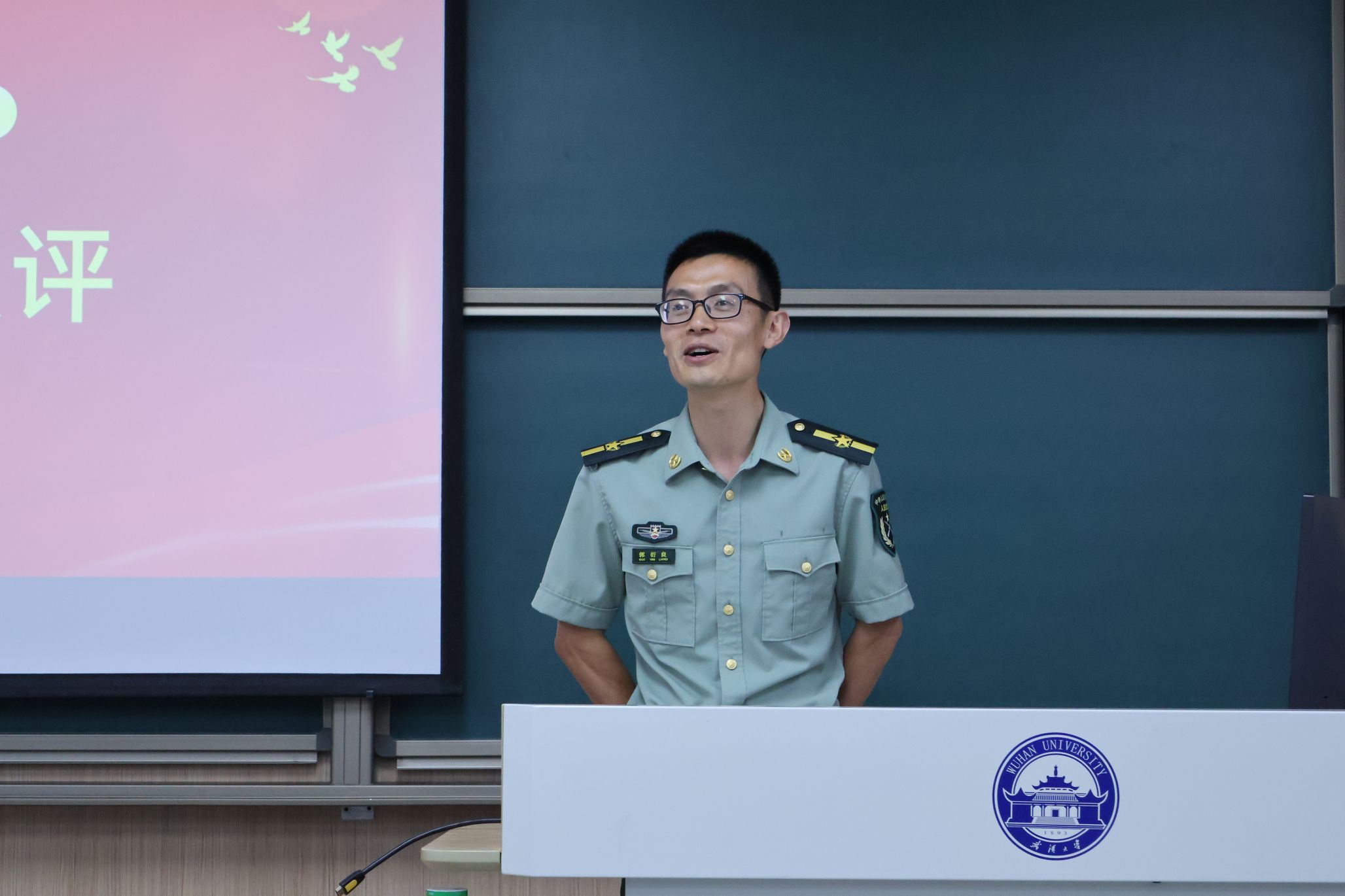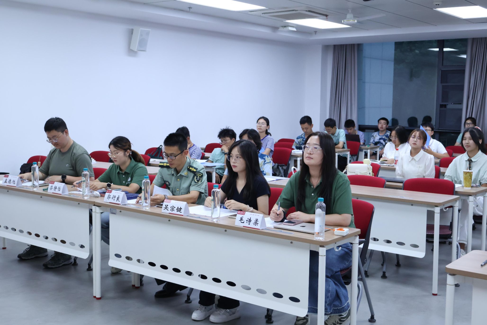 军训五团2025级本科新生“传承抗战精神,共筑国防长城”爱我国防主题演讲比赛,在工学部第一教学楼A307教室拉开帷幕。来自军训五团各连排的优秀新生经各学院选拔推荐,齐聚本场比赛。他们怀揣着满腔热忱,以饱满的精神状态和铿锵有力的声音,围绕国防事业与抗战精神抒发自身的爱国之情与强国之愿。