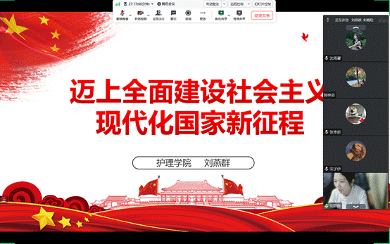 为深入学习贯彻习近平新时代中国特色社会主义思想,落实学校主题教育工作总体部署,88日,刘燕群副院长以“迈上全面建设社会主义现代化国家新征程”为题,在线上为学生三支部全体党员、入党积极分子讲授专题党课。本次专题党课由学生三支部书记王丽主持。