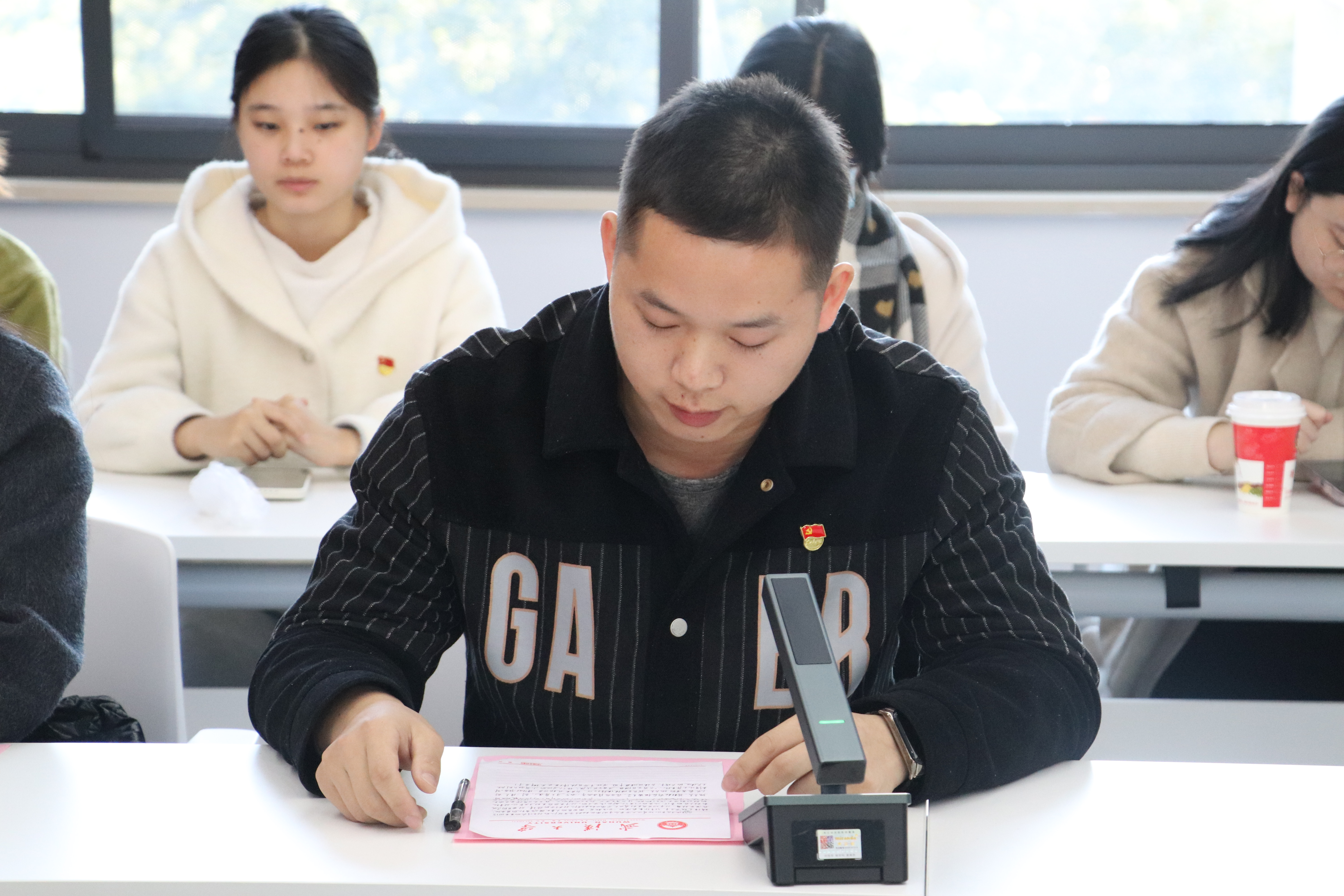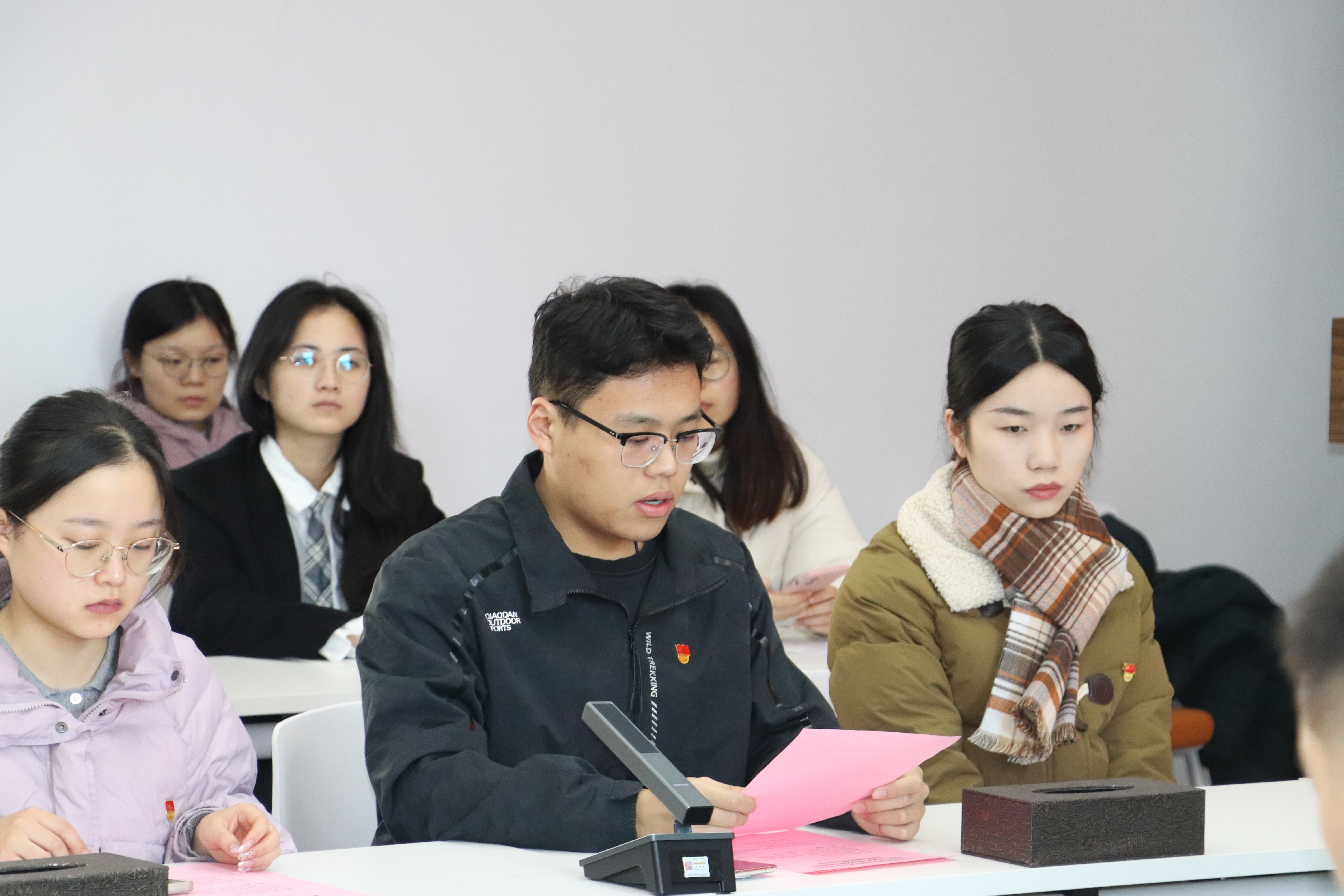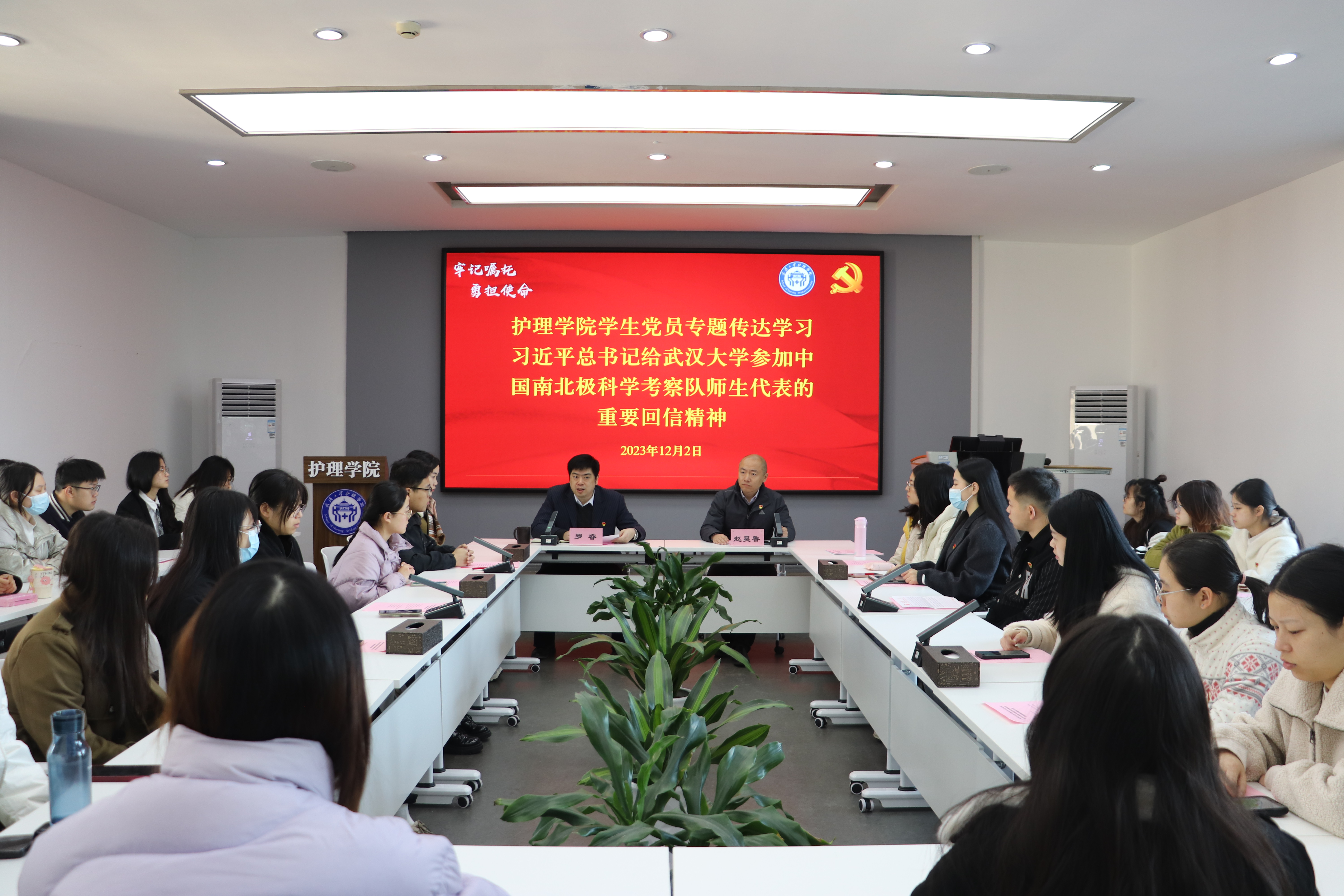 党委书记赵昊鲁、党委副书记罗睿、专职辅导员毛诗柔、兼职辅导员涂益明,全体学生党员,学院团委、学生会、研究生会主要干部,及其他学生代表参加会议。