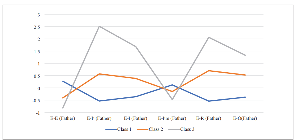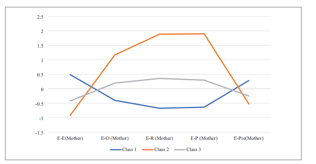由此,杨冰香课题组在此研究中使用潜在剖面分析和逻辑回归方法来探讨住院重度抑郁障碍患者父母教养方式和其临床症状之间的关联。研究结果显示,参与者的父母教养方式可分成3个潜在剖面(见图2,图3),分别命名为“温暖偏爱型”,“一般教养型”,“严苛控制型”。