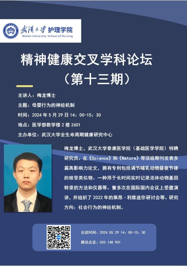 精神心理智慧护理研究中心承办的主题为“母婴行为的神经机制”的跨学科论坛在医学院2号楼2601成功举办。此次会议由梅龙博士主持,吸引了众多学者和研究人员的参与。